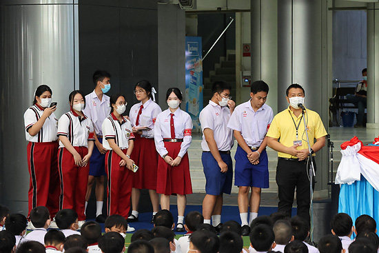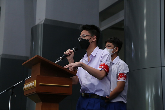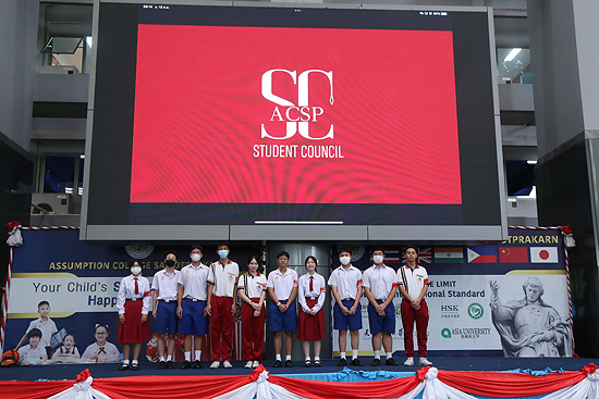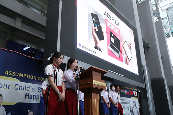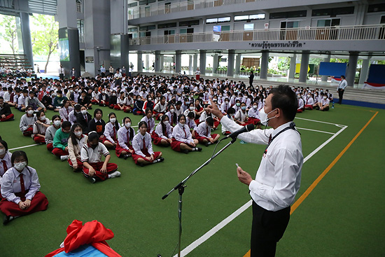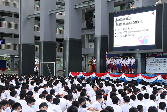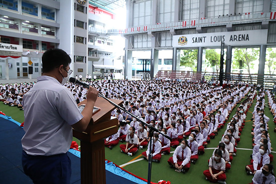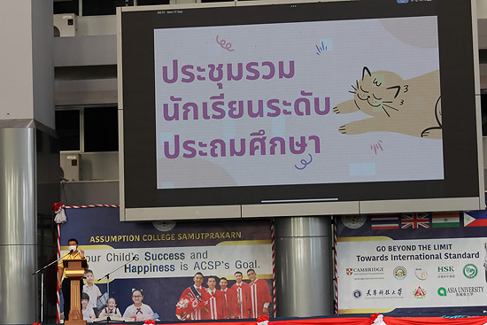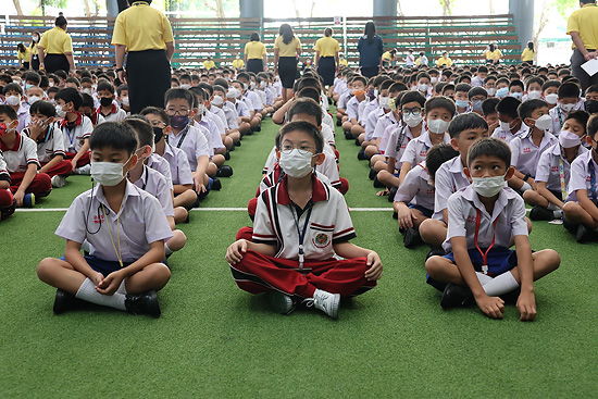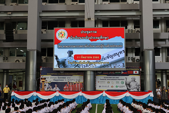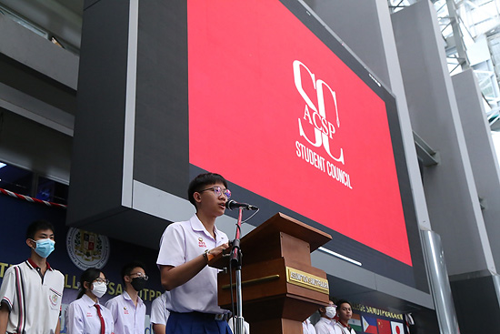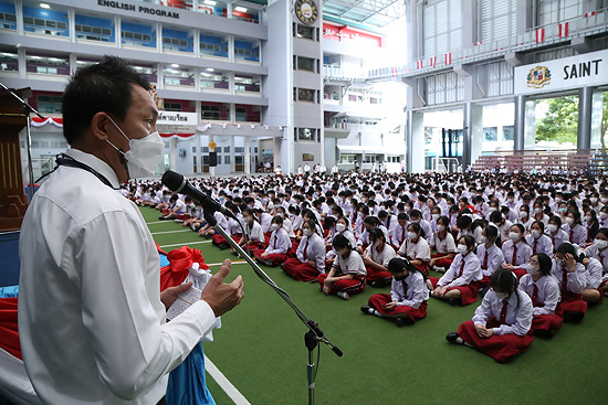 การประชุมรวม นักเรียนระดับประถมศึกษาและระดับมัธยมศึกษา โดยคณะกรรมการสภานักเรียน และผู้ช่วยฝ่ายปกครอง