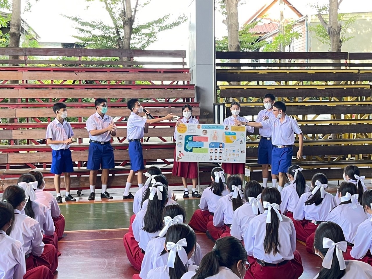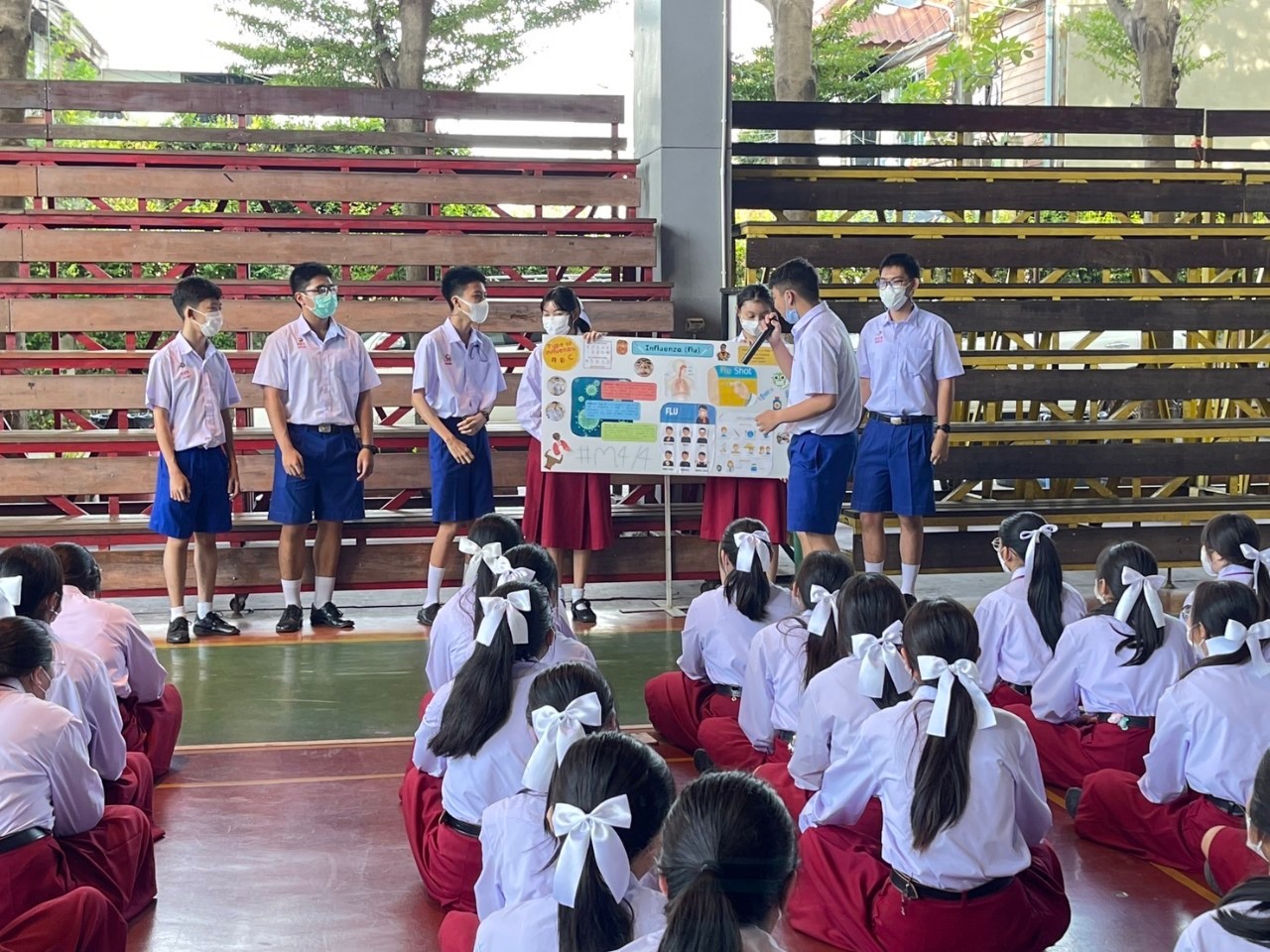 กิจกรรม Morning Assembly ของนักเรียนชั้นมัธยมศึกษาปีที่ 4 โดยนักเรียนได้รับความรู้เรื่อง ไข้หวัดใหญ่