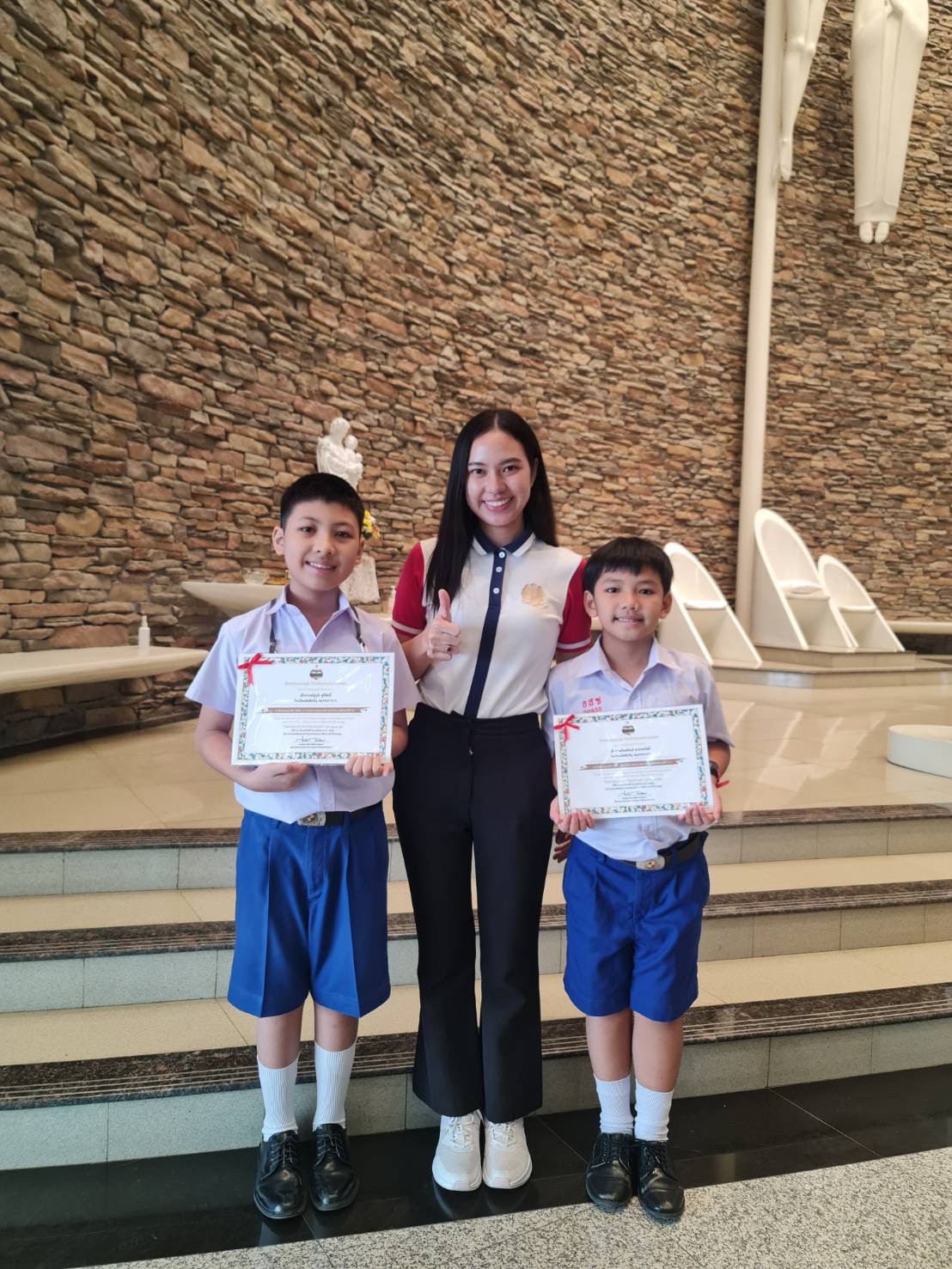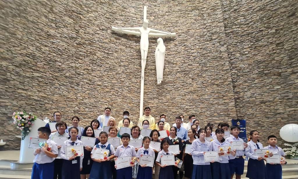 “นักเรียนเข้ารับรางวัลการประกวดวาดภาพระบาสี ‘เดินตามรอยผู้แพร่ธรรม’”