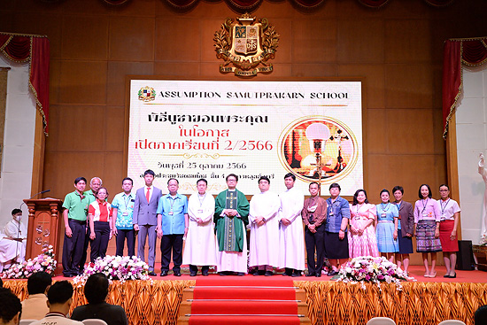 งานอภิบาล สำนักผู้อำนวยการ คณะอนุกรรมการครูคาทอลิก ได้กำหนดจัด พิธีบูชาขอบพระคุณโอกาสเปิดภาคเรียนที่ 2/2566 บาดหลวงธีระ กิจบำรุง เจ้าอาวาสวัดพระบิดาเจ้า ทิพวัล เป็นประธานในพิธี พร้อมด้วย คณะภราดา คณะกรรมการผู้ร่วมบริหาร สมาคมผู้ปกครองและครู สมาคมศิษย์เก่า สภาภิบาลวัดพระบิดาเจ้า ทิพวัล คณะครูและนักเรียนระดับชั้นมัธยมศึกษาปี่ที่ 3 – 6 เข้าร่วมพิธีบูชาขอบพระคุณ ณ หอประชุมรัชตสมโภช อาคารหลุยส์ มารี ชั้นที่ 4 และหลังพิธีบูชาขอบพระคุณได้มีพิธีเสกรถตู้โรงเรียนใหม่ จำนวน 2 คัน ณ Sports Center หน้าอาคารหลุยส์ มารี โรงเรียนอัสสัมชัญสมุทรปราการ