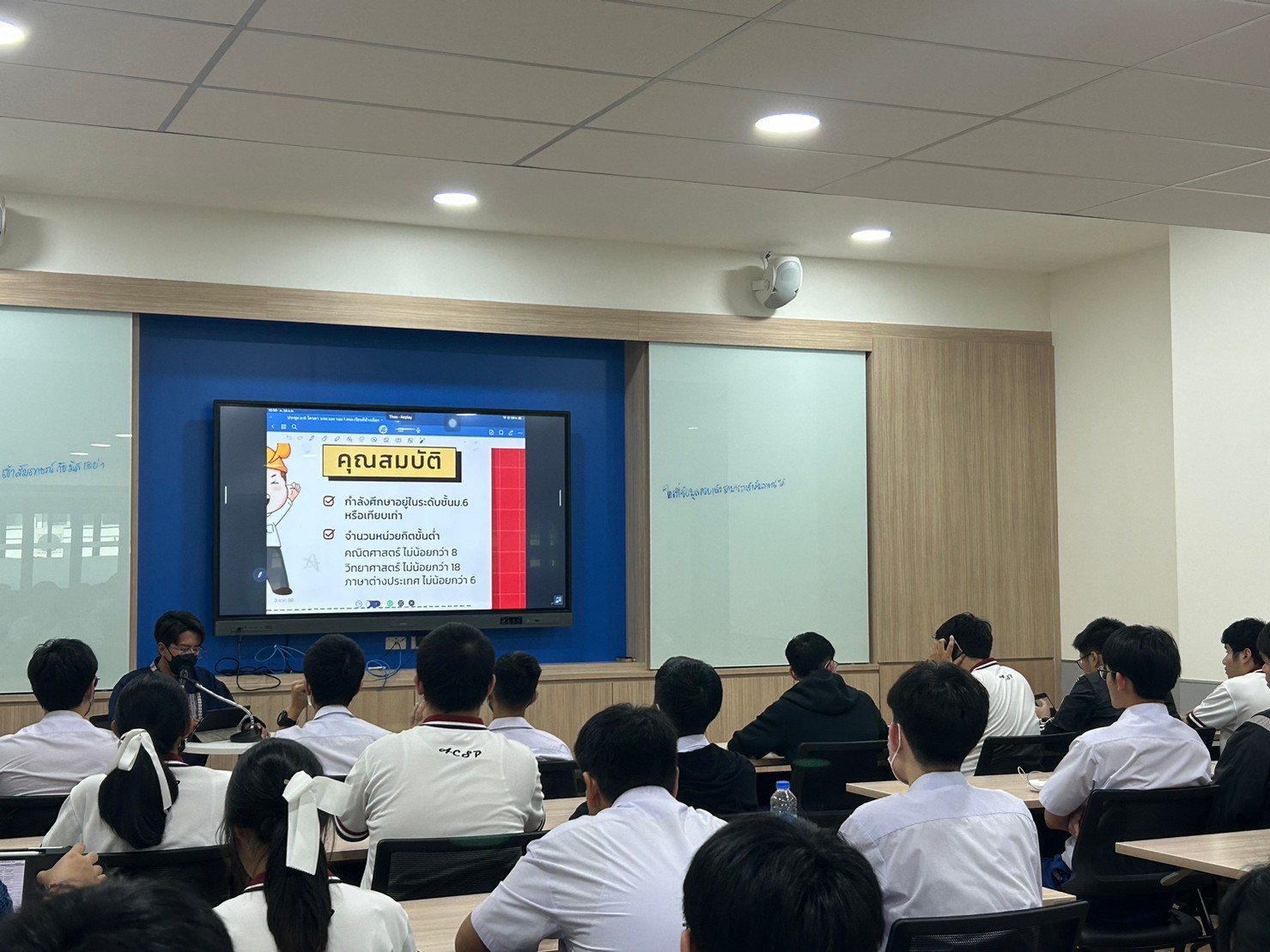 ให้แก่นักเรียนระดับชั้นมัธยมศึกษาปีที่ 6 กลุ่มที่สนใจศึกษาต่อในคณะวิศวกรรมศาสตร์ พร้อมทั้งเปิดโอกาสให้นักเรียนซักถามข้อสงสัยต่างๆ