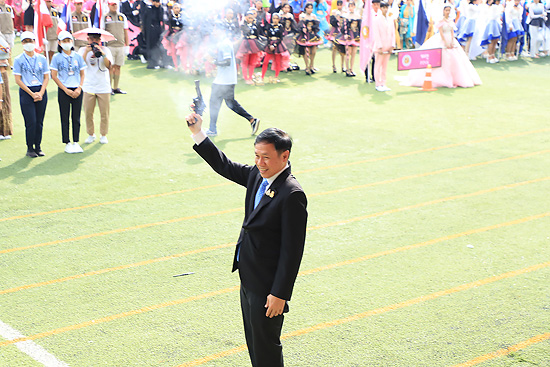 พร้อมด้วย คณะผู้บริหาร คณะครู นักเรียน และผู้ปกครองนักเรียน ร่วมพิธีเปิดการแข่งขันในครั้งนี้