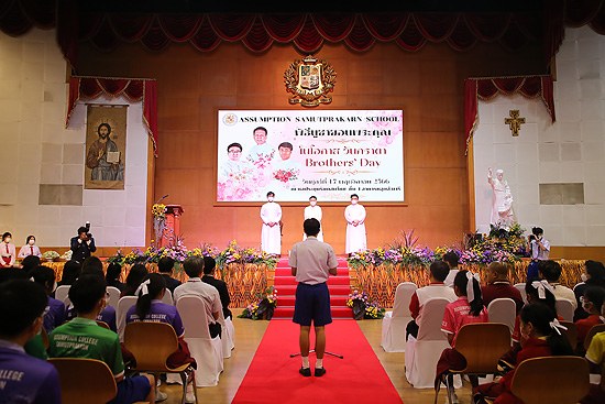 ในวันศุกร์ที่ 17 พฤศจิกายน 2566 งานอภิบาล สำนักผู้อำนวยการ คณะกรรมการงานอภิบาล ได้กำหนดจัดพิธีบูชาขอบพระคุณโอกาสวันภราดา “Brothers’ Day” และพิธีเสกห้องสมาคมผู้ปกครองและครู ห้องสมาคมศิษย์เก่า และศูยน์การเรียนรู้แผนก English Program โดยเชิญ บาดหลวงมาโนช สมสุข เจ้าอาวาสวัดนักบุญเทเรซา หนองจอก เป็นประธานในพิธี พร้อมด้วยคณะภราดา คณะผู้บริหาร สมาคมผู้ปกครองและครู สมาคมศิษย์เก่า คณะครู นักเรียน และพนักงานเข้าร่วมในพิธีดังกล่าว ณ หอประชุมรัชตสมโภช ชั้น 4 อาคารหลุยส์ มารี โรงเรียนอัสสัมชัญสมุทรปราการ