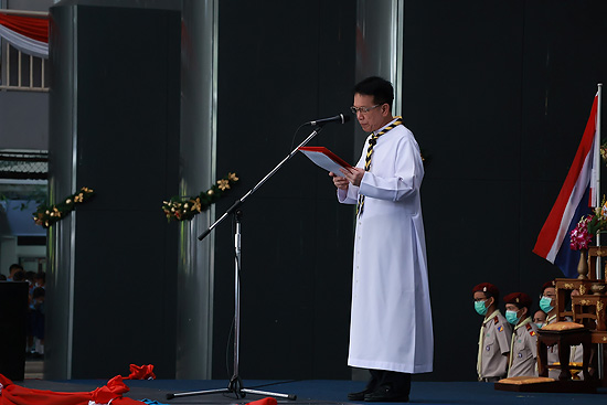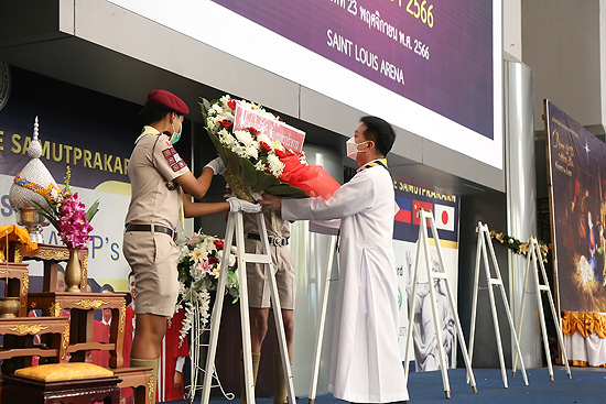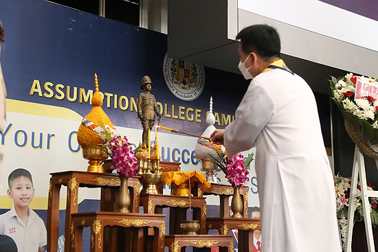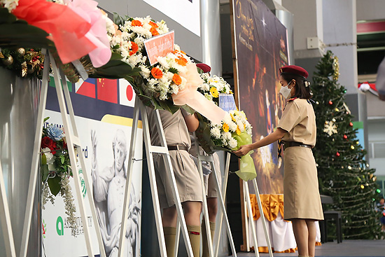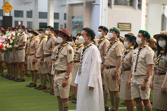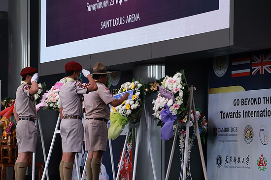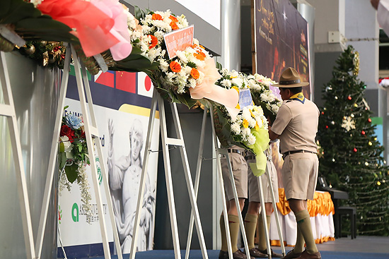 กิจกรรมมีการวางพวงมาลาของกองลูกเสือโรงเรียน โดย ภราดา ดร.มณฑล ประทุมราช