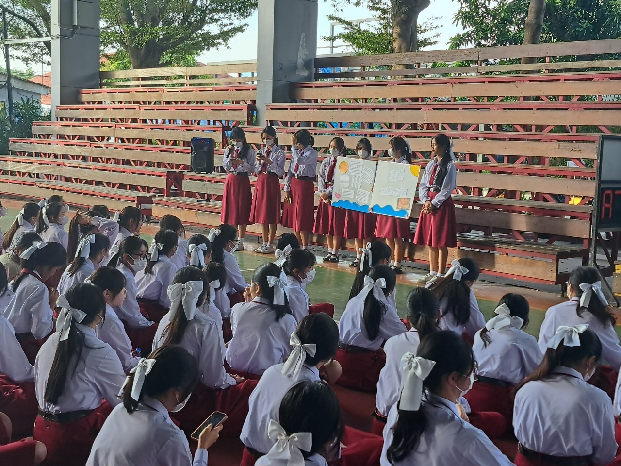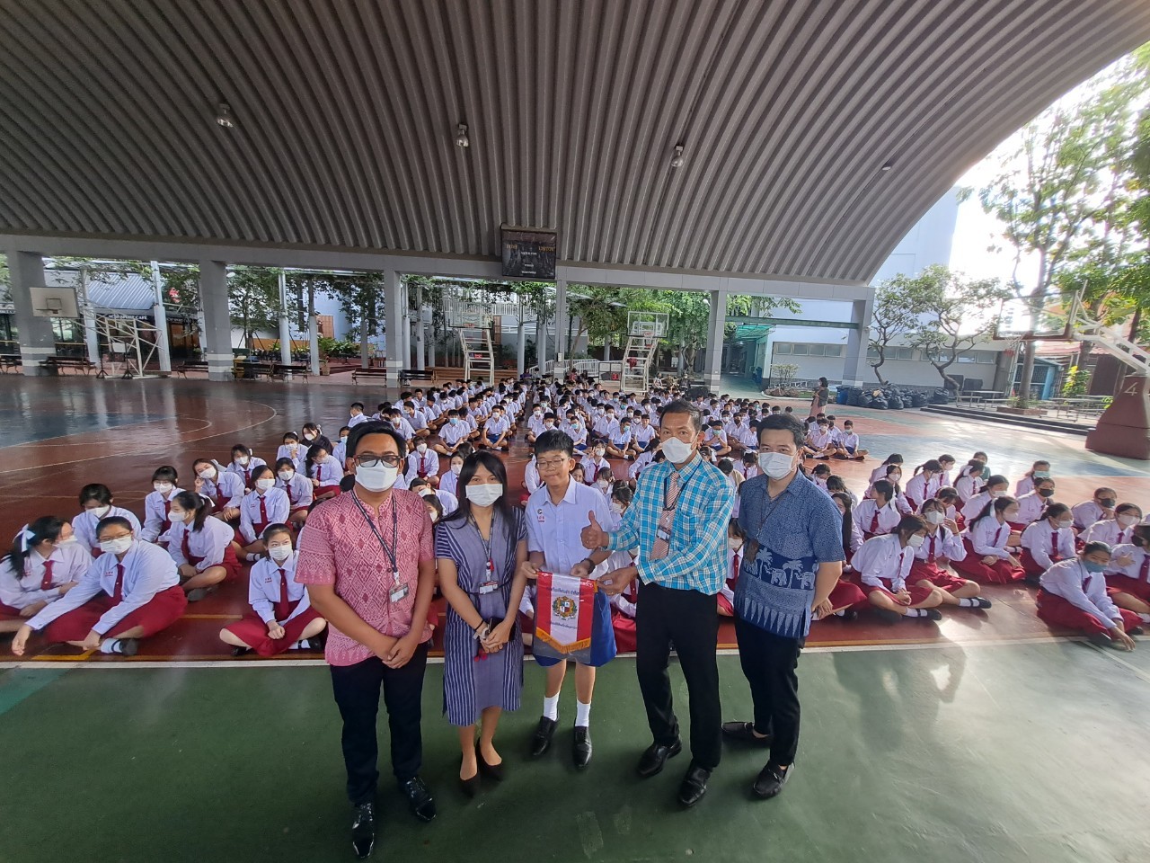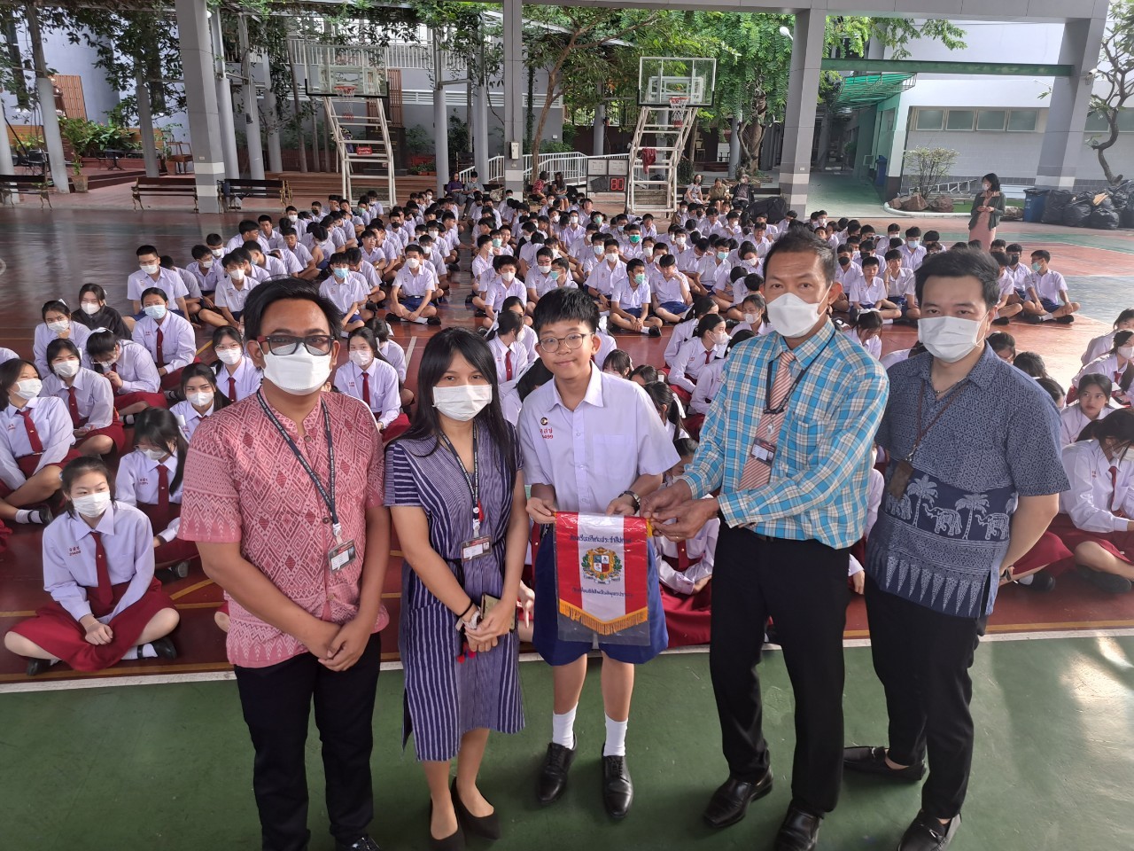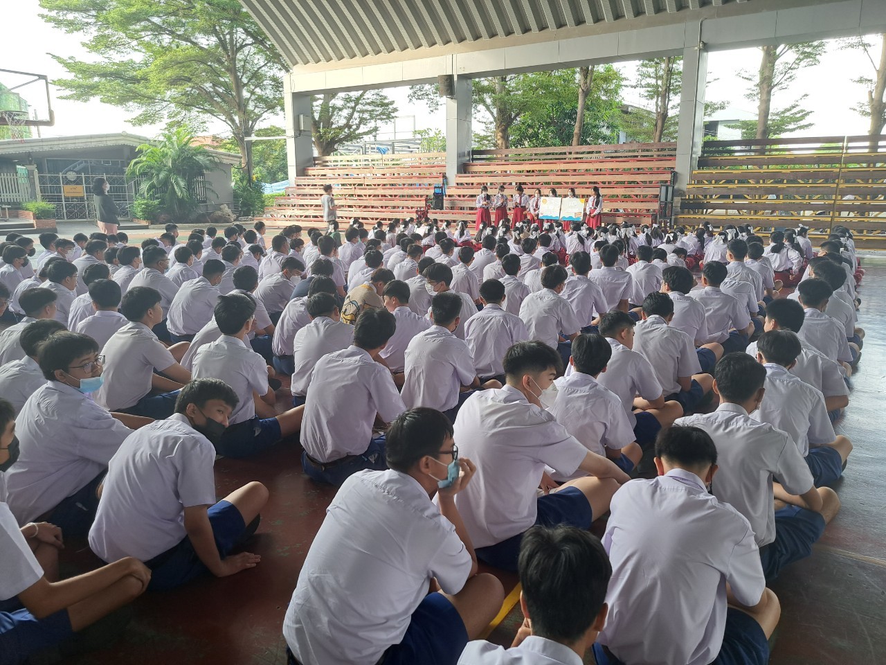 บรรยากาศการเข้าร่วมกิจกรรม Morning Assembly ของนักเรียนชั้นมัธยมศึกษาปีที่ 4 โดยนักเรียนได้รับความรู้เรื่อง ประเพณีลอยกระทง โดยตัวแทนนักเรียนจากระดับชั้นมัธยมศึกษาปีที่ 4/5