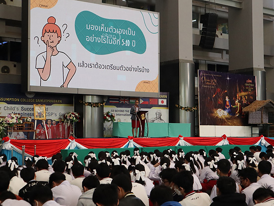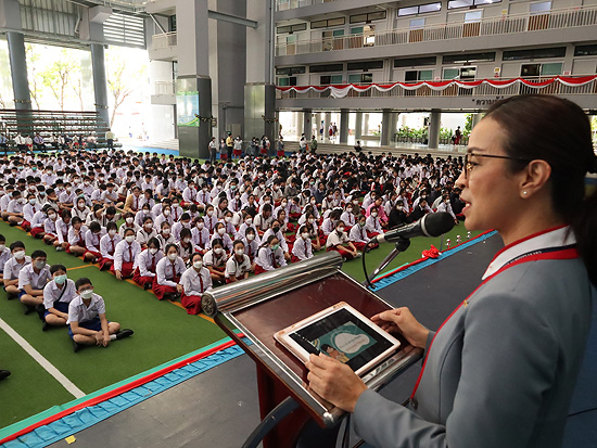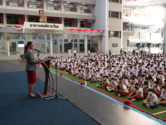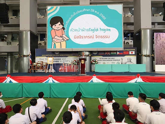 เมื่อวันอังคารที่ 28 พฤศจิกายน พ.ศ. 2566 มิสจิราภรณ์ จิตธรรม หัวหน้าฝ่าย English Program อบรมนักเรียน มัธยมศึกษา ประจำภาคเรียนที่ 2 ปีการศึกษา 2566 ณ บริเวณ St. Louis Arena