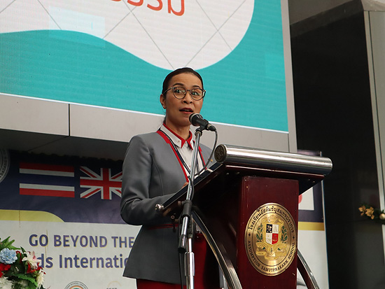มิสจิราภรณ์ จิตธรรม หัวหน้าฝ่าย English Program อบรมนักเรียน มัธยมศึกษา ประจำภาคเรียนที่ 2 ปีการศึกษา 2566