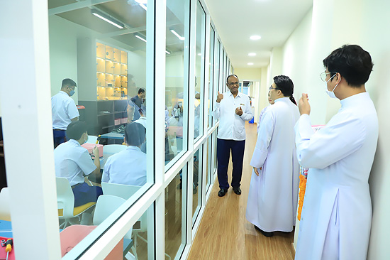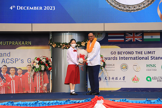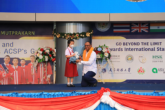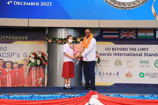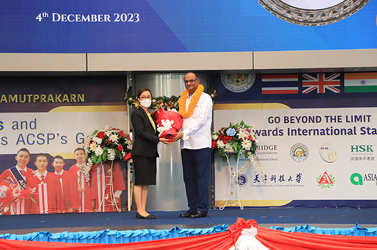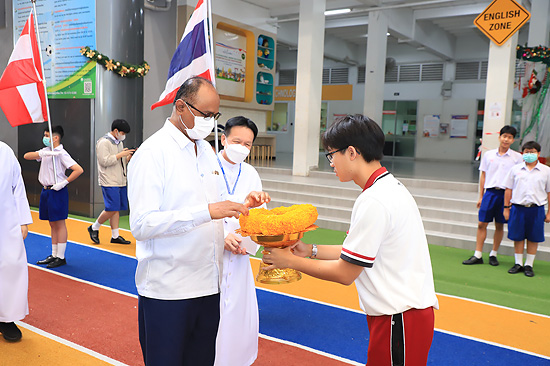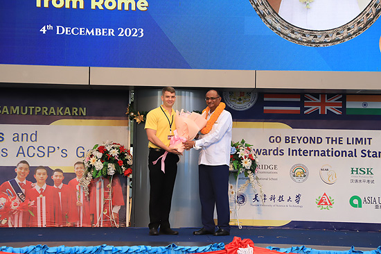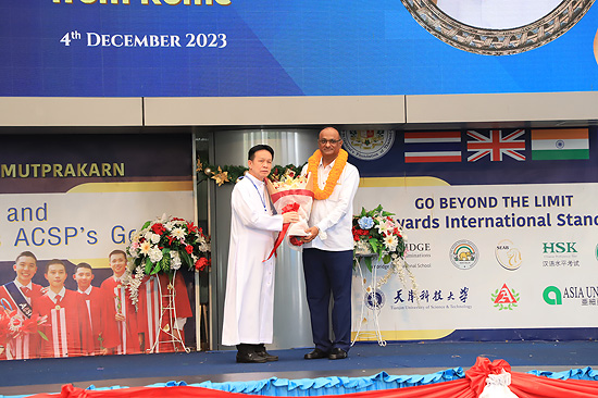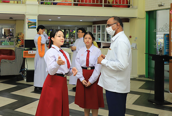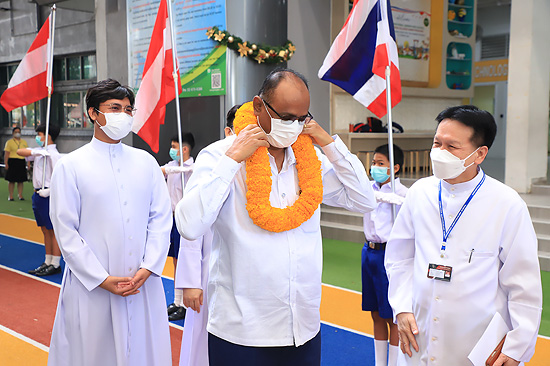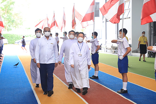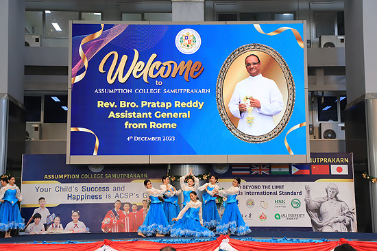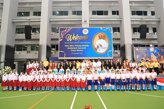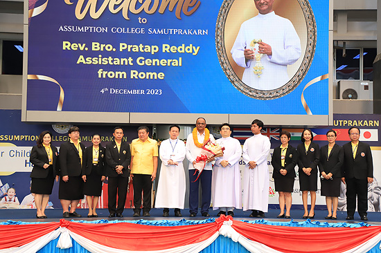 Visit of Rev. Bro. Pratap Reddy, Assistant General of the Montfort Brothers of St. Gabriel, Rome, Italy, to Assumption Samut Prakarn School. After being greeted by Bro. Dr. Monthol Prathumarach and welcomed by a number of the ACSP management team members. Student representatives gave speeches. Following the welcome ceremony at the St. Louis Arena, the Assistant Governor Walk and visit the St. Gabriel Building.