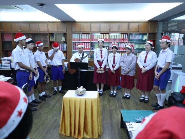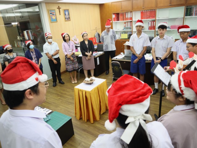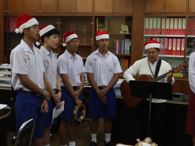 เมื่อวันพุธที่ 13 ธันวาคม ม.จิรัฐฏ์ จันทร์เขียว หัวหน้างานอภิบาล สำนักผู้อำนวยการ จัดกิจกรรมร้องเพลงส่งความสุข Christmas Carol โดยนักเรียนที่มีความสนใจ ในการร้องเพลง Christmas Carol มาร่วมกันสร้างสีสันและสร้างบรรยากาศช่วงคริสตมาส ณ ห้องสำนักผู้อำนวยการ