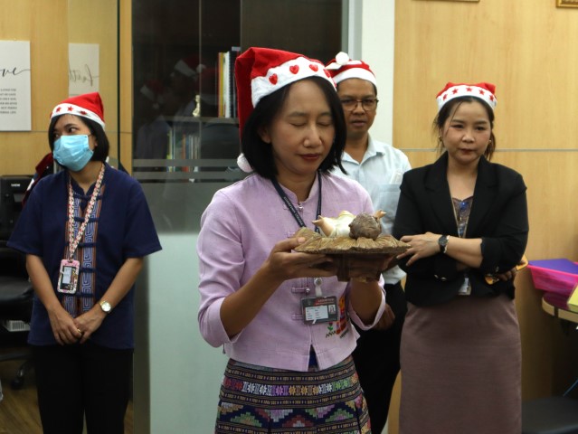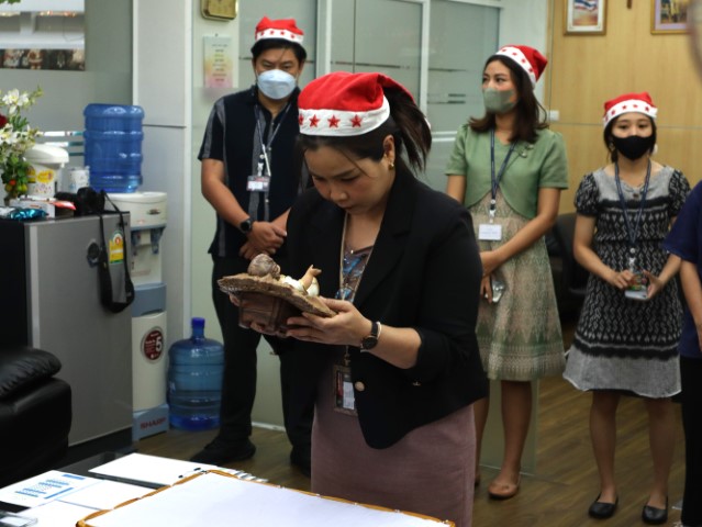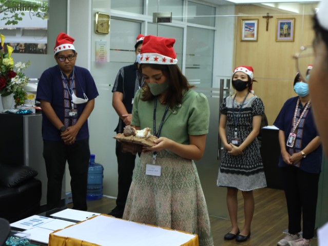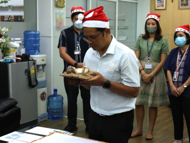 ม.จิรัฐฏ์ จันทร์เขียว หัวหน้างานอภิบาล สำนักผู้อำนวยการ จัดกิจกรรมร้องเพลงส่งความสุข Christmas Carol ณ บริเวณ อาคารศักดานุสรณ์