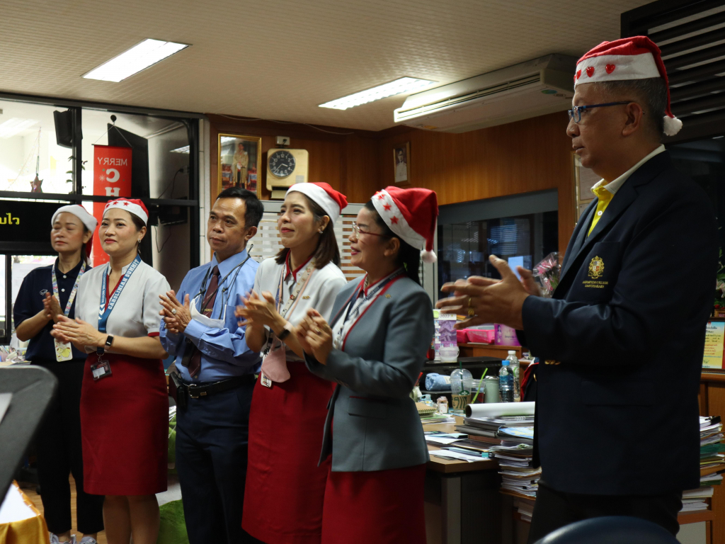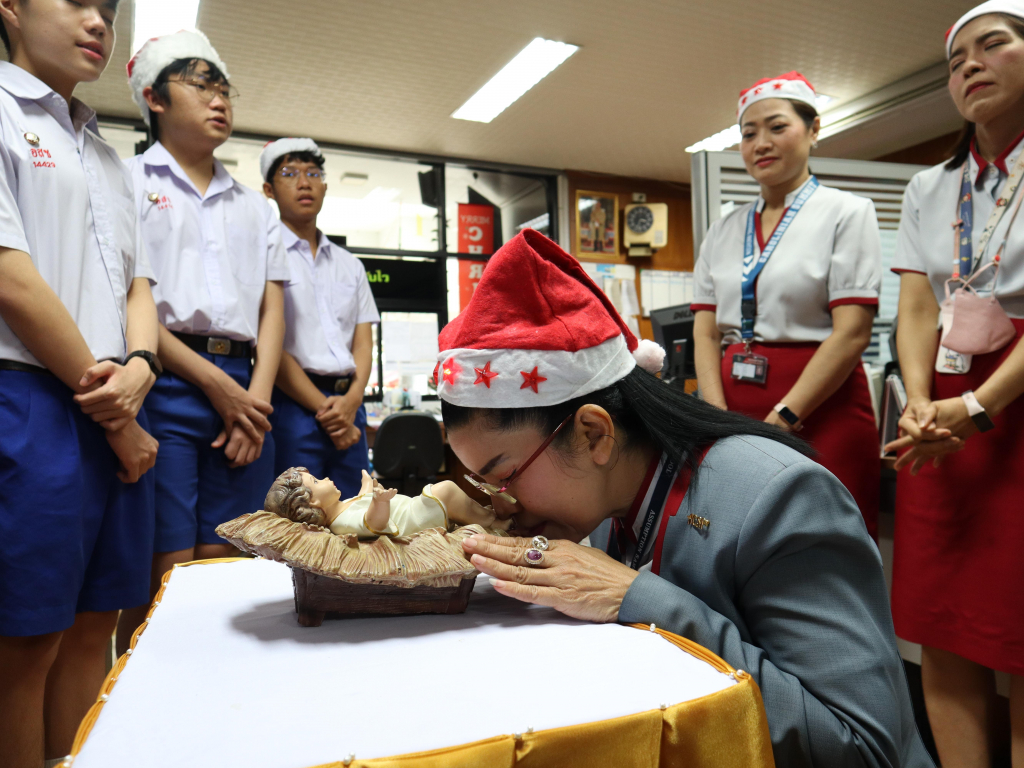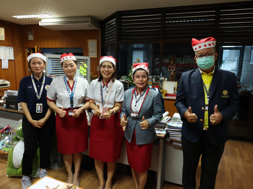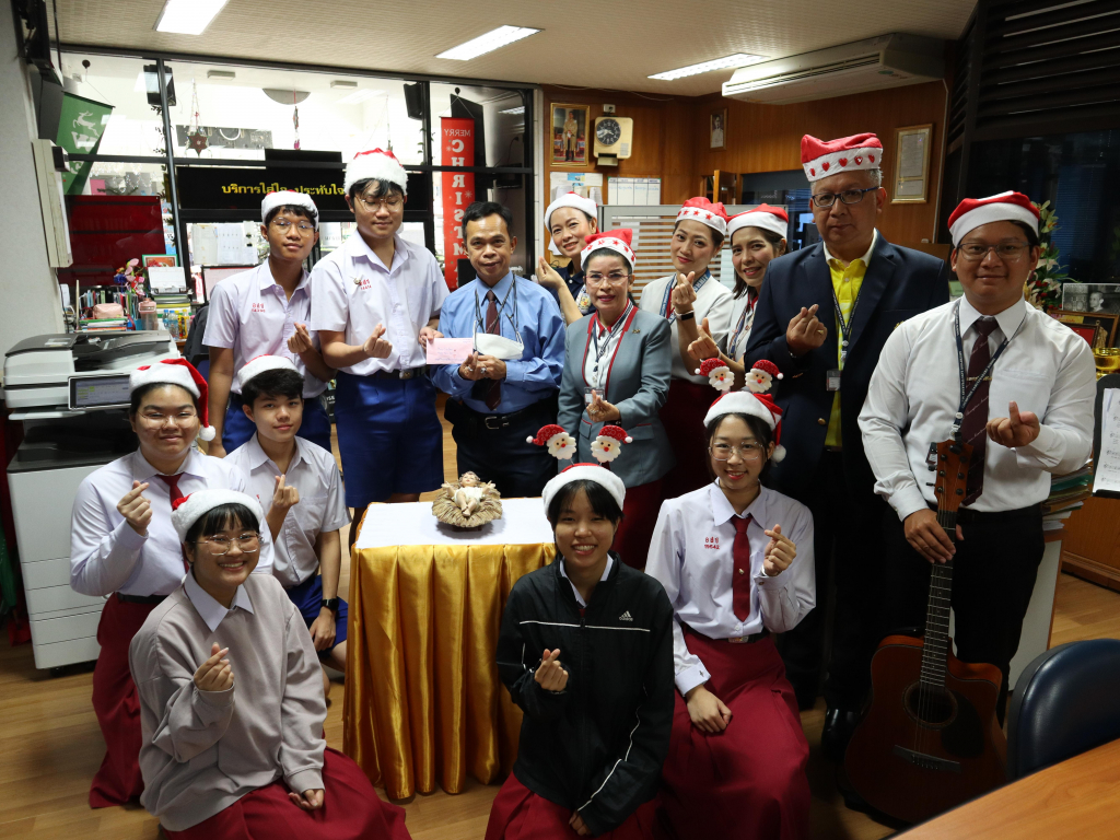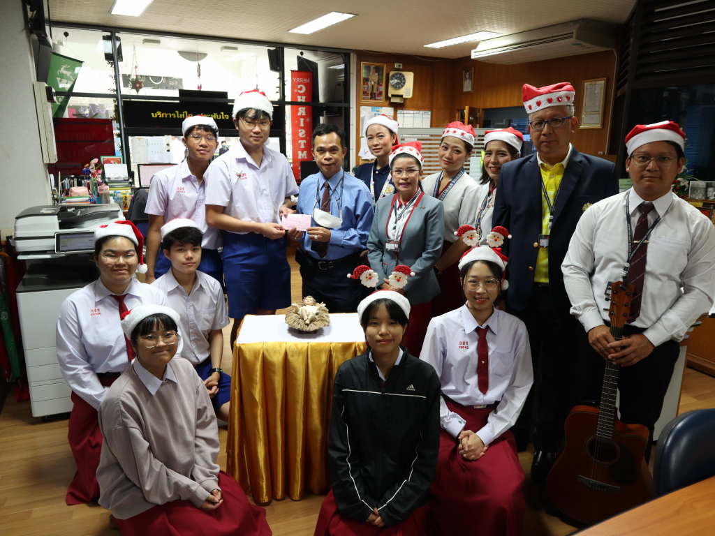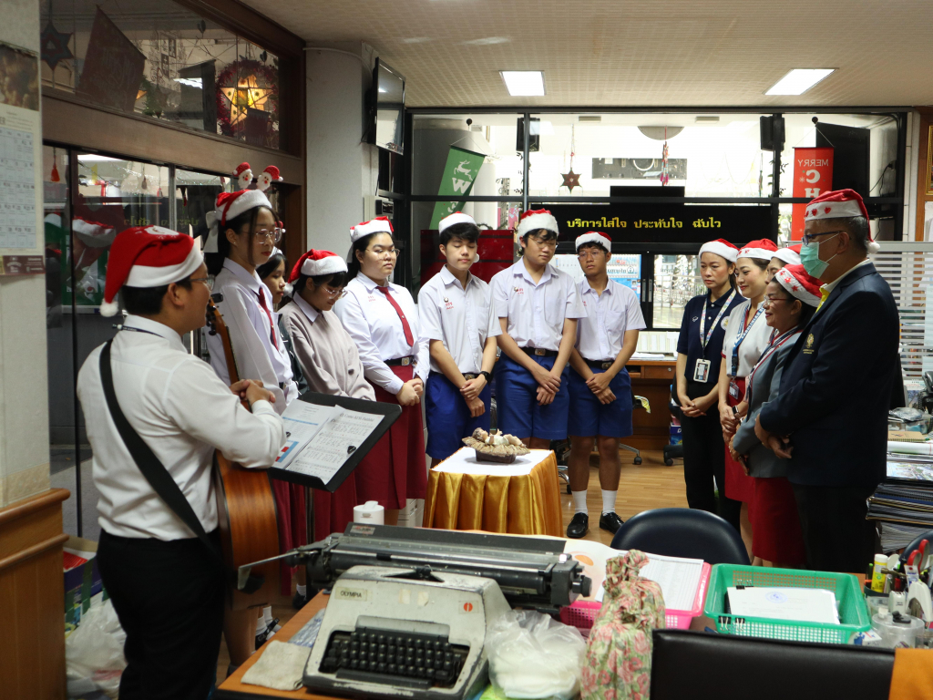 ม.จิรัฐฏ์ จันทร์เขียว หัวหน้างานอภิบาล สำนักผู้อำนวยการ จัดกิจกรรมร้องเพลงส่งความสุข Christmas Carol ณ ห้องธุรการ อาคารอัสสัมชัญ