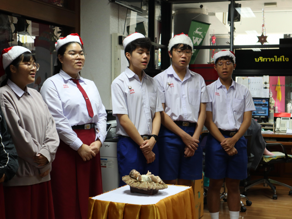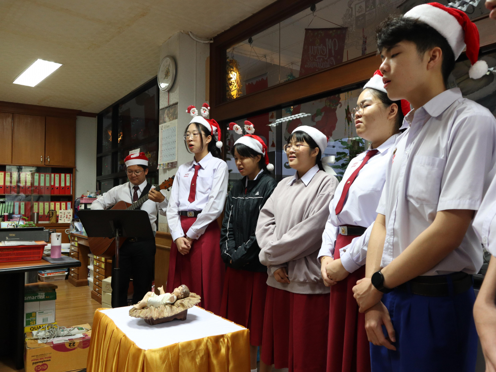 เมื่อวันอังคารที่ 19 ธันวาคม ม.จิรัฐฏ์ จันทร์เขียว หัวหน้างานอภิบาล สำนักผู้อำนวยการ จัดกิจกรรมร้องเพลงส่งความสุข Christmas Carol โดยนักเรียนที่มีความสนใจ ในการร้องเพลง Christmas Carol มาร่วมกันสร้างสีสันและสร้างบรรยากาศช่วงคริสตมาส ณ ห้องธุรการ อาคารอัสสัมชัญ