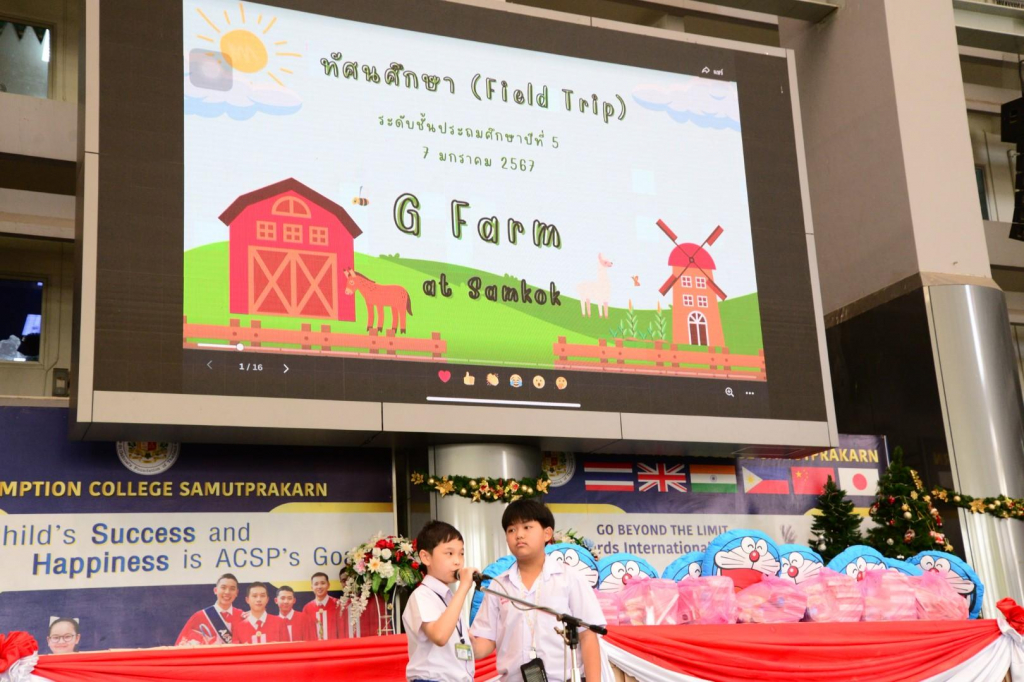 วันพฤหัสบดีที่ 18 มกราคม 2567 บรรยากาศการ Share Field Trip ของนักเรียนประถมศึกษาปีที่ 5 ที่จัดขึ้น ณ G Farm at Samkok ปทุมธานี ระหว่างวันที่ 5-7 มกราคม พ.ศ. 2567 ที่ผ่านมา ณ บริเวณ Saint Louis Arena