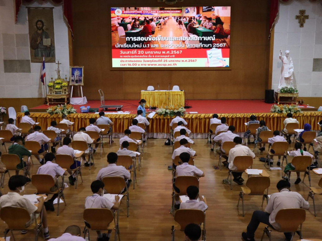 บรรยากาศการสอบข้อเขียนและสอบสัมภาษณ์นักเรียนใหม่ มัธยมศึกษาปีที่ 1 และระหว่างชั้น ปีการศึกษา 2567