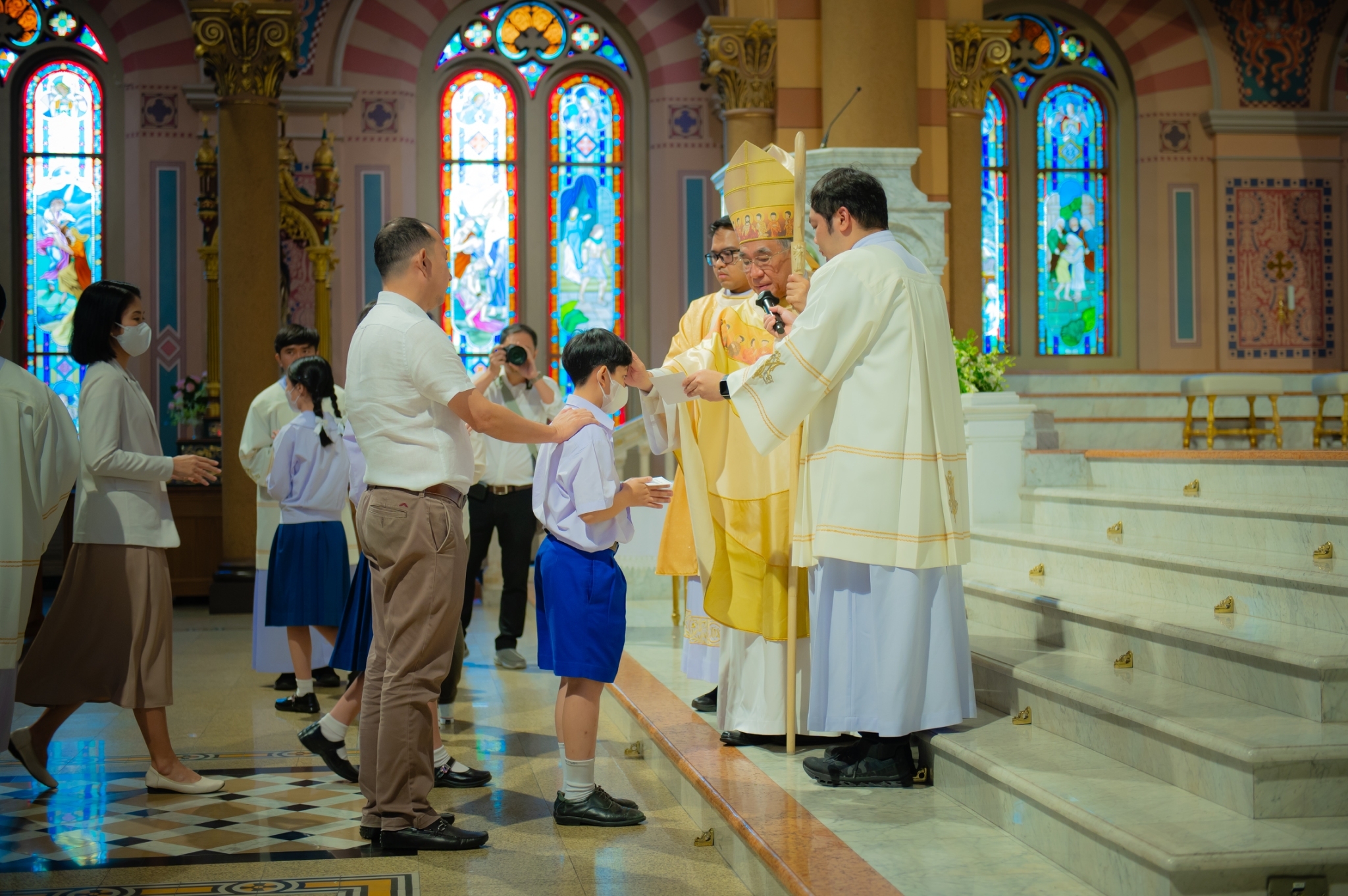 งานอภิบาล สำนักผู้อำนวยการ คณะกรรมการงานอภิบาลโรงเรียนอัสสัมชัญสมุทรปราการ ได้ดำหนดส่งนักเรียนคาทอลิกที่ได้รับการเรียนคำสอนอย่างดี ได้รับศีลล้างบาป ได้รับศีลมหาสนิท ตามบทบาทหน้าที่ของการเป็นคริสตชน ม.จิรัฎฐ์ จันทร์เขียว หัวหน้างานภิบาล และ ม.ทองพูน โพธิสาร ช่างบันทึกภาพ นำนักเรียนคาทอลิกระดับชั้นประถมศึกษาปีที่ 6 จำนวน 7 คน เข้าร่วมพิธีบูชาขอบพระคุณโอกาสศีลกำลังพระคาร์ดินัลฟรังซิสเซเวียร์ เกรียงศักดิ์ โกวิทวาณิช เป็นประธานในพิธี วันเสาร์ที่ 20 มกราคม 2567 เวลา 07.30-12.00 น. ณ อาสนวิหารอัสสัมชัญ บางรัก กรุงเทพมหานครฯ โดยมีวัตถุประสงค์ดังต่อไปนี้