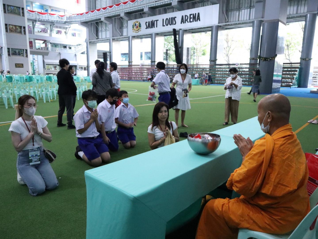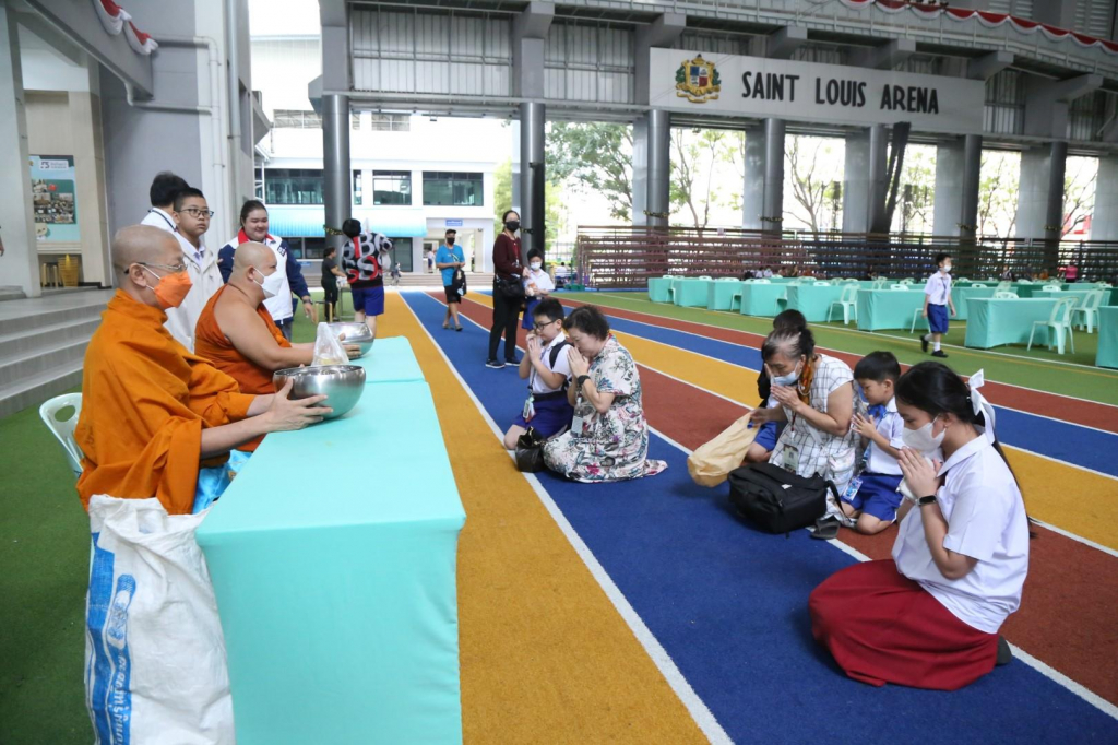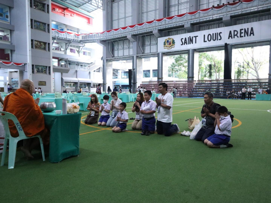 คณะครูฝ่ายปกครองร่วมจัดพิธีทำบุญตักบาตรเนื่องในโอกาศวันครู ในวันพฤหัสบดีที่ 25 มกราคม พ.ศ.2567 ณ บริเวณ Saint Louis arena