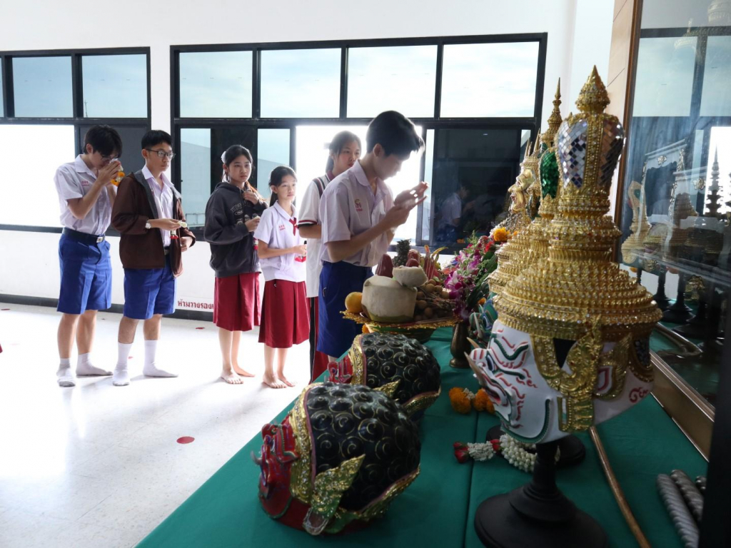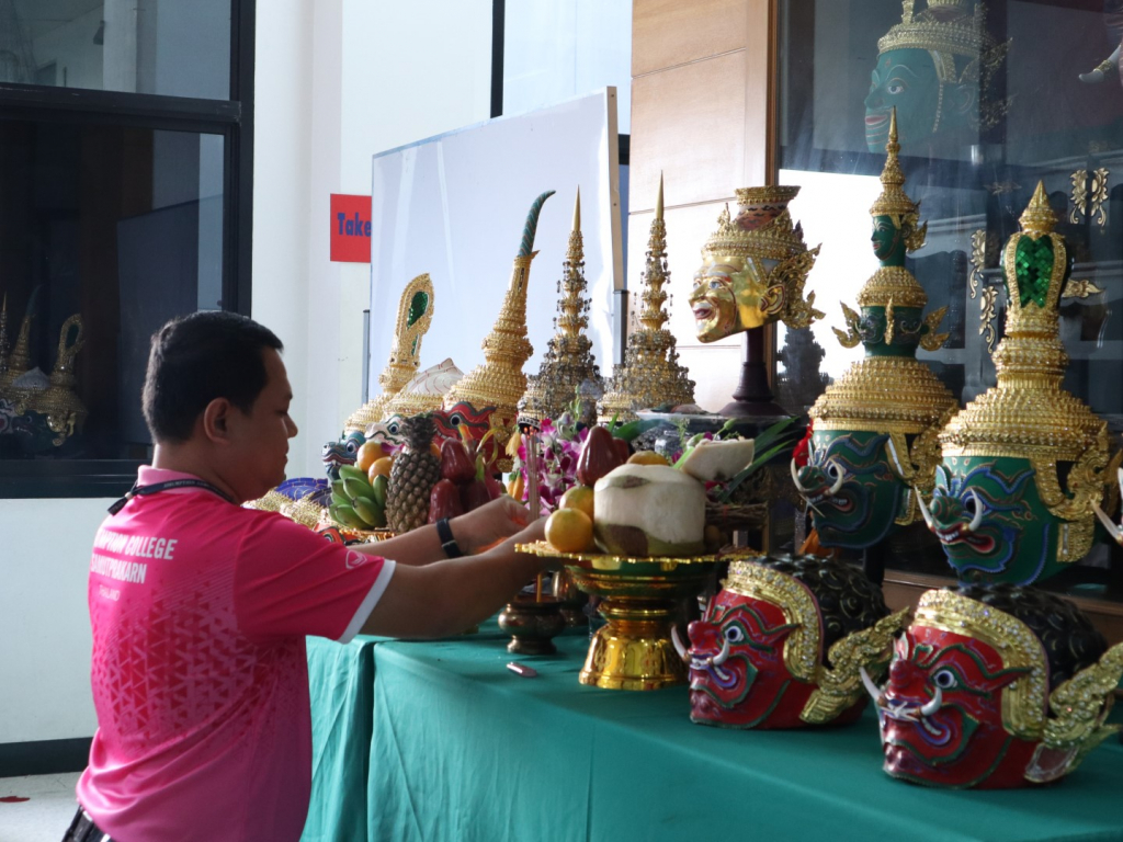 คณะครูดนตรีไทยและนาฏศิลป์ร่วมกันจัดพิธีไหว้ครูดนตรี ณ หน้าห้องดนตรีไทย ชั้น 4 อาคารหลุยส์มารี เพื่อเตรียมพร้อมการแสดงงานราตรีสัมพันธ์ (วันที่ 31 ม.ค. - 3 ก.พ. 2567)