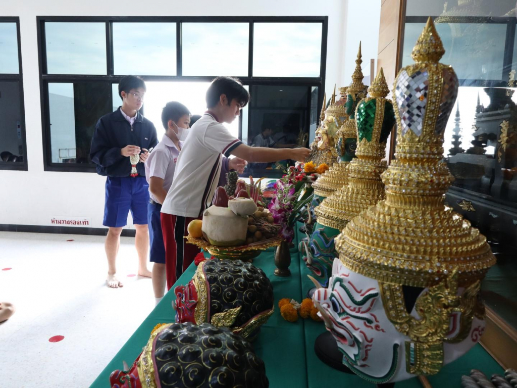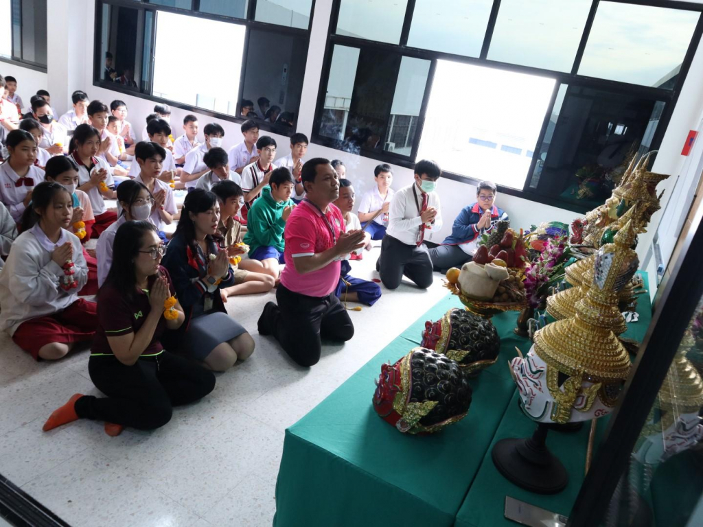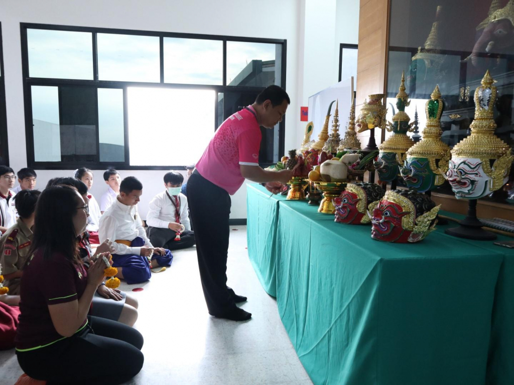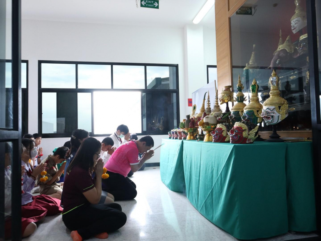 คณะครูดนตรีไทยและนาฏศิลป์ร่วมกันจัดพิธีไหว้ครูดนตรี ณ หน้าห้องดนตรีไทย ชั้น 4 อาคารหลุยส์มารี