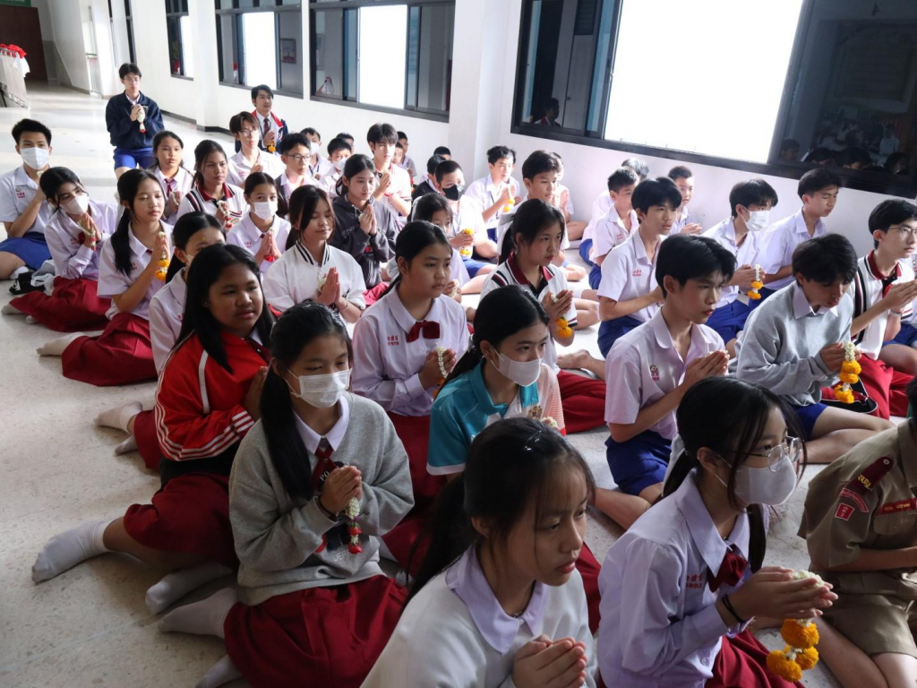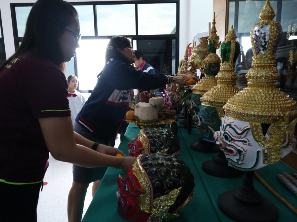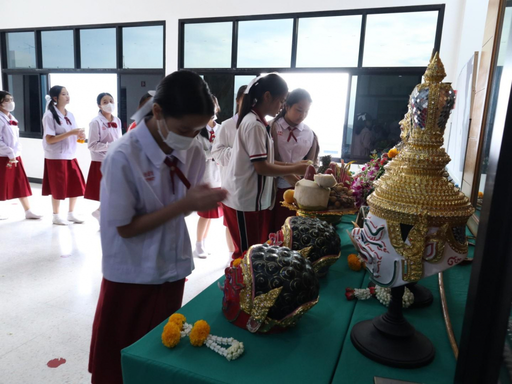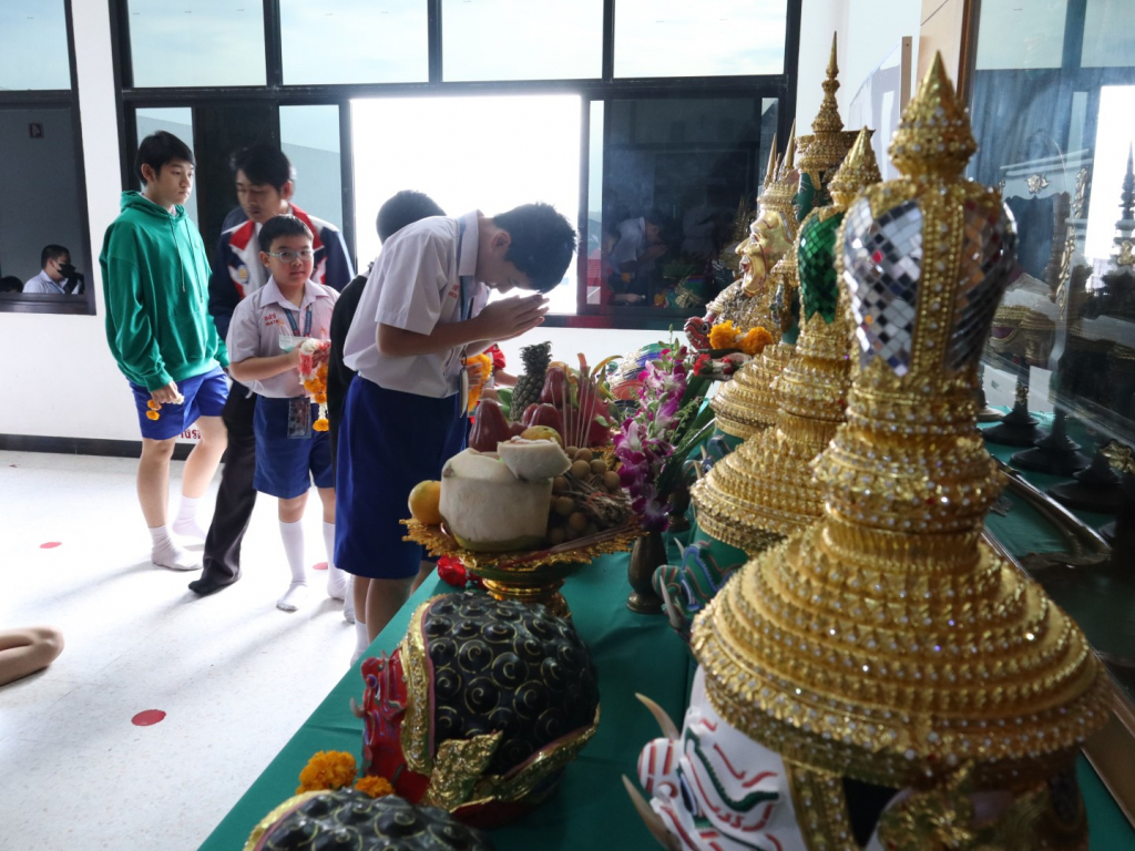 คณะครูดนตรีไทยและนาฏศิลป์ร่วมกันจัดพิธีไหว้ครูดนตรี ณ หน้าห้องดนตรีไทย ชั้น 4 อาคารหลุยส์มารี