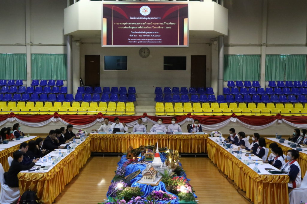 บรรยากาศการสรุปผลภาพรวมความก้าวหน้าการแก้ไขและพัฒนาระบบประกันคุณภาพในโรงเรียน ปีการศึกษา 2566 โดยคณะอนุกรรมการงานมาตรฐานคุณภาพการศึกษา มูลนิธิเซนต์คาเบรียลแห่งประเทศไทย ณ ห้องประชุมรัชตสมโภช ระหว่างวันที่ 23-26 มกราคม พ.ศ.2567