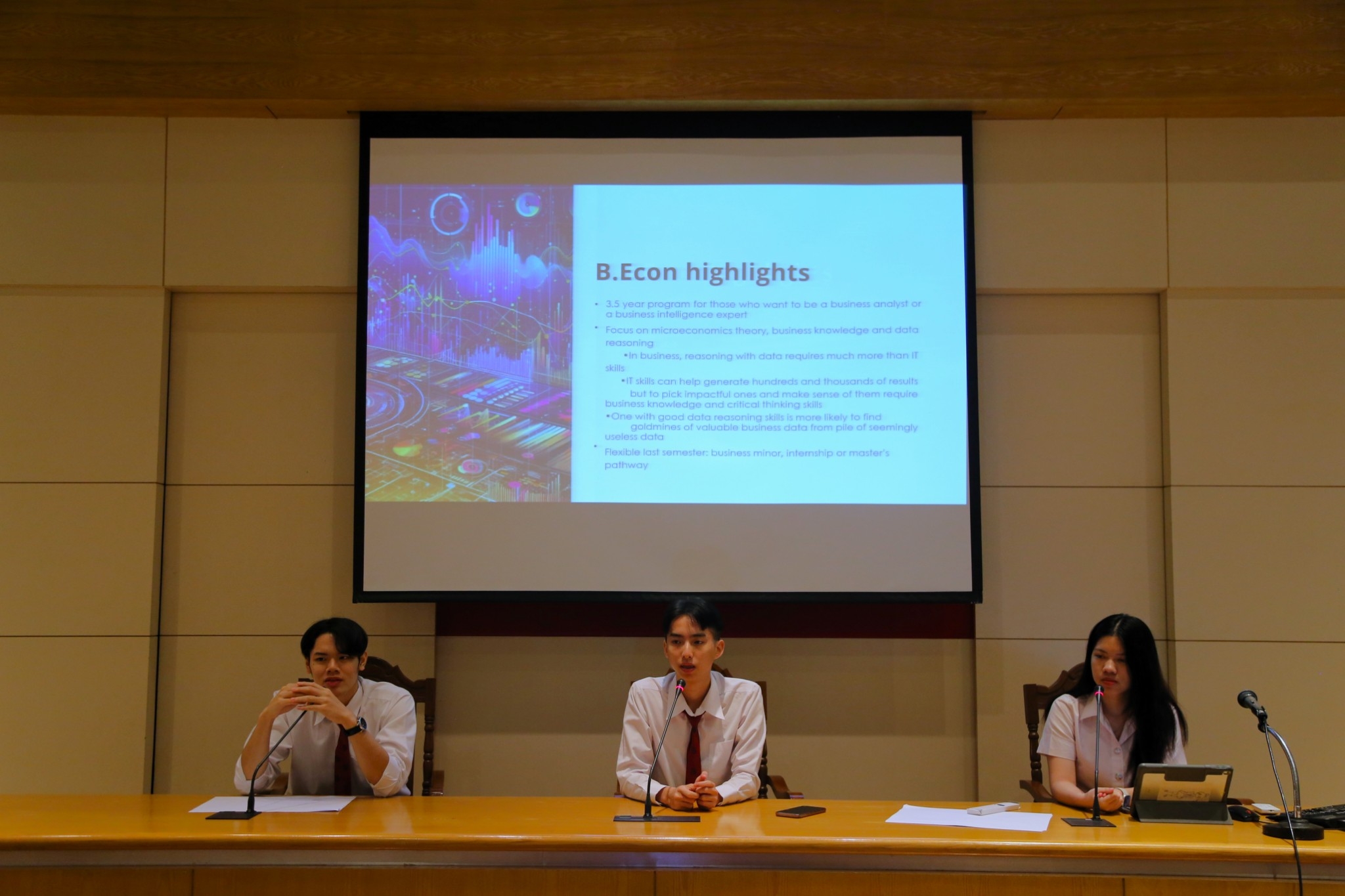 เมื่อวันพฤหัสบดีที่ 1 กุมภาพันธ์ 2567 เวลา 09.00 - 15.30 น. ม.ธรรศ อนันต์ถาวร หัวหน้างานแนะแนว นำนักเรียนระดับชั้นมัธยมศึกษาปีที่ 6 กลุ่มสนใจ จำนวน 22 คน เข้าเยี่ยมชมและทำ Workshop ในคณะวิศวกรรมศาสตร์ คณะบริหารธุรกิจและเศรษฐศาสตร์ คณะดนตรี และคณะนิเทศศาสตร์ ณ มหาวิทยาลัยอัสสัมชัญ วิทยาเขตสุวรรณภูมิ เพื่อให้นักเรียนได้มีโอกาสพูดคุยกับรุ่นพี่ในคณะ พร้อมทั้งรับฟังการบรรยายหลักสูตรจากอาจารย์ผู้สอน และได้ลงมือทดลองทำ Workshop ในคณะที่ตนสนใจ