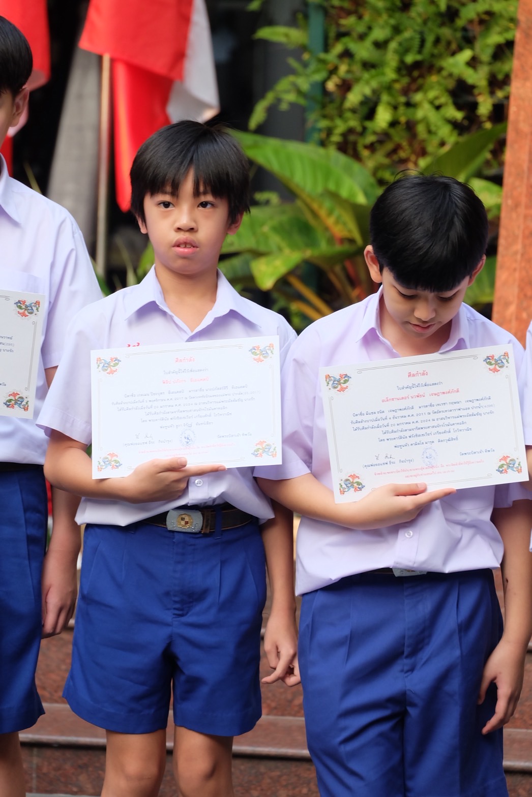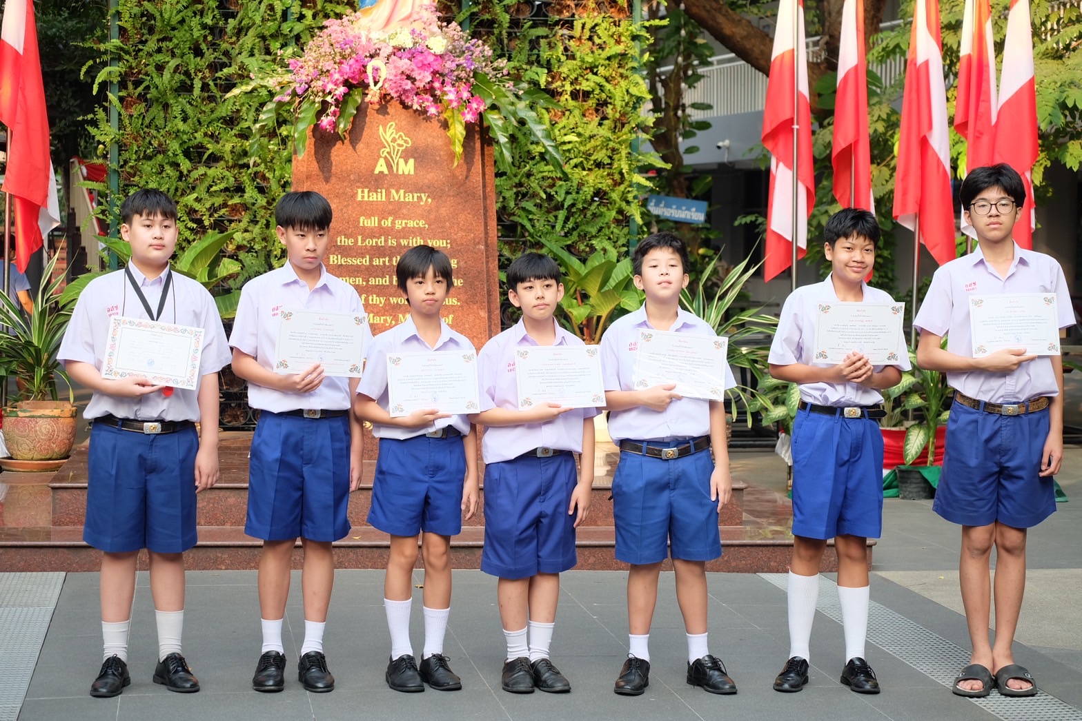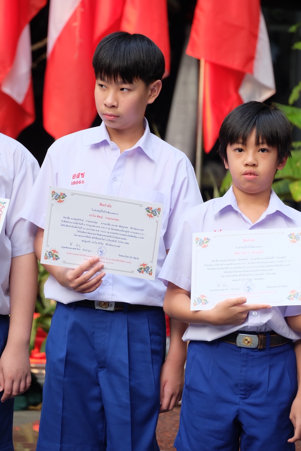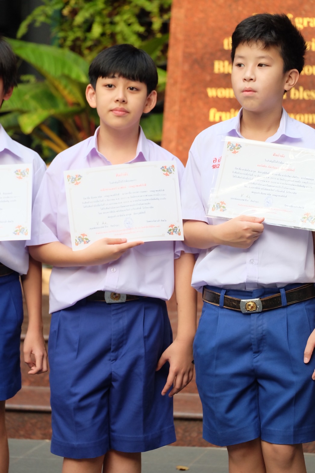 งานอภิบาล สำนักผู้อำนวยการ โรงเรียนอัสสัมชัญสมุทรปราการ ภราดามานิต สกนธวัฒน์ รองผู้อำนวยการ ภราดาณัฐธร สุพล รองผู้อำนวยการ มอบของที่ระลึกสายลูกประคำแสดงความยินดีและมอบเกียรติบัตรใบรับลองการรับศีลกำลังให้กับนักเรียนคาทอลิกระดับชั้นประถมศึกษาปีที่ 6 จำนวน 7 คน