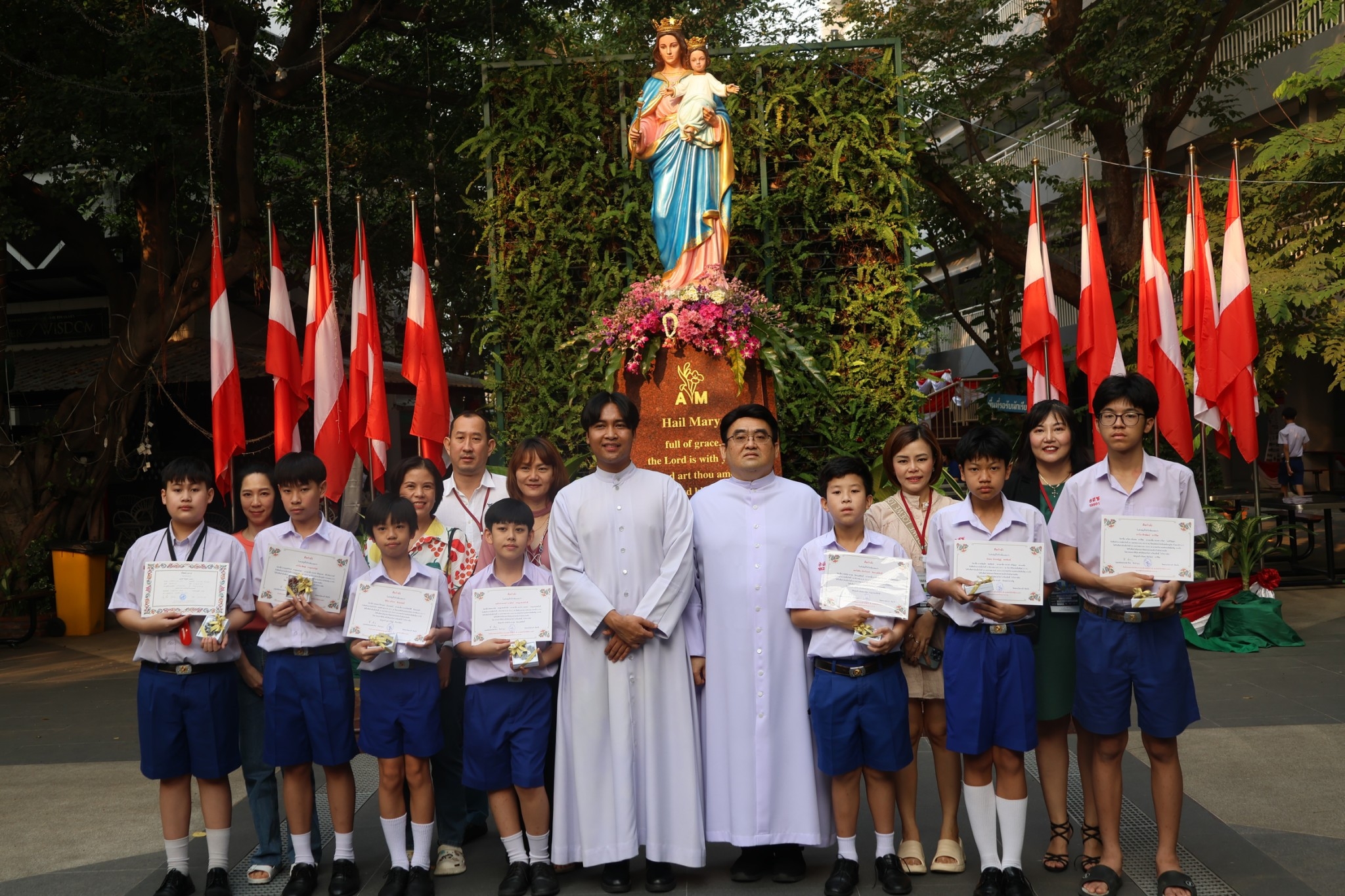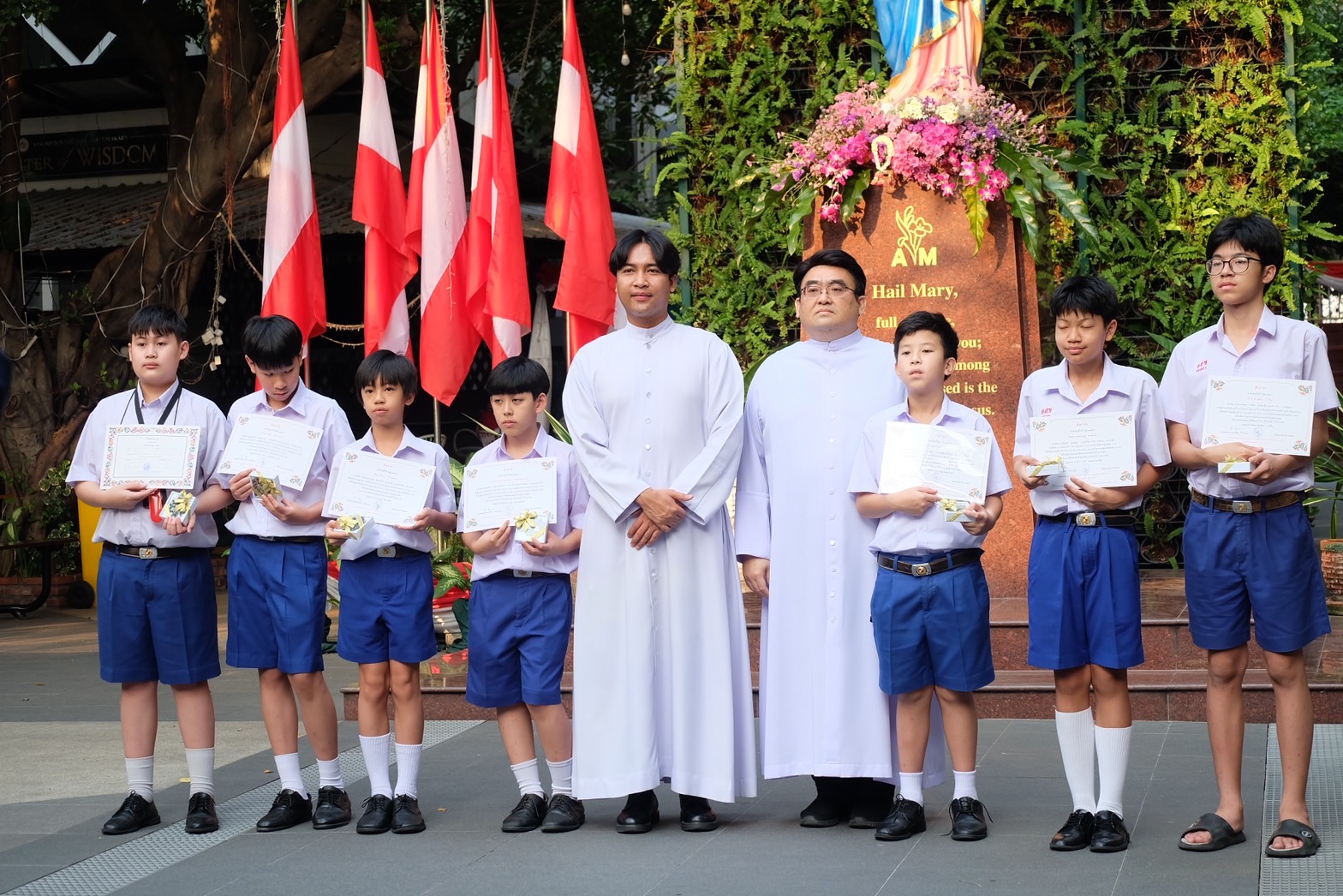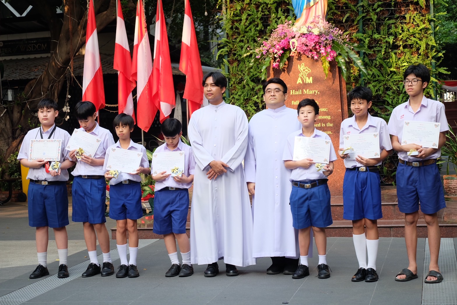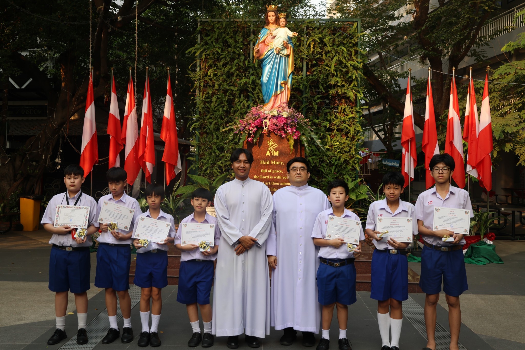 ที่เข้าร่วมพิธีศีลกำลัง เมื่อวันเสาร์ที่ 20 มกราคม 2567 ณ อาสนวิหารอัสสัมชัญ บางรัก กรุงเทพฯ ที่ผ่านมา ณ พระรูปแม่พระองค์อุปถัมภ์ ลาน Inspiration Square โรงเรียนอัสสัมชัญสมุทรปราการ