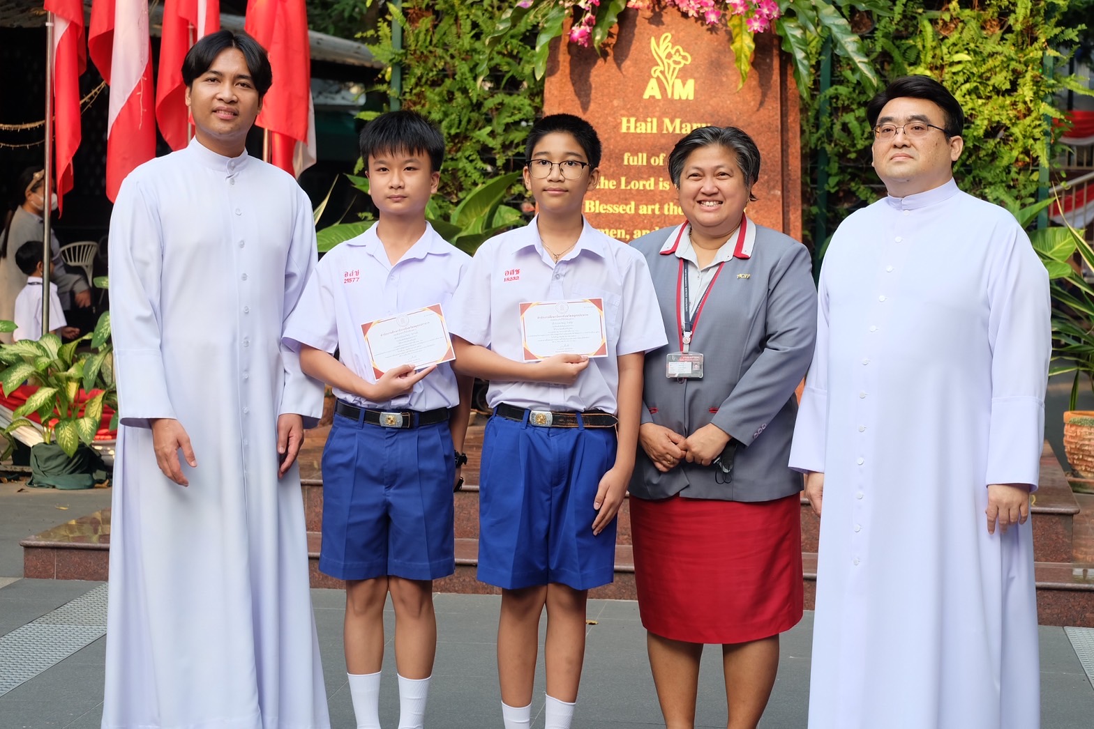 งานอภิบาล สำนักผู้อำนวยการ โรงเรียนอัสสัมชัญสมุทรปราการ ภราดามานิต สกนธวัฒน์ รองผู้อำนวยการ ภราดาณัฐธร สุพล รองผู้อำนวยการ มอบเกียรติบัตรแสดงความยินดีให้กับนักเรียนที่เข้าร่วมการแข่งขัน วาดภาพระบายสียุวธรรมฑูตสังฆมณฑลกรุงเทพมหานครฯ โอกาสการฉลองครบรอบ 50 ปี ชีวิตของการบวชเป็นบาดหลวงของ พระคาร์ดินัลไมเกิ้ล มีชัย กิจบุญชู พระคาร์ดินัลกิตติคุณ แห่งสังฆมณฑลกรุงเทพฯ ณ พระรูปแม่พระองค์อุปถัมภ์ ลาน Inspiration Square โรงเรียนอัสสัมชัญสมุทรปราการ