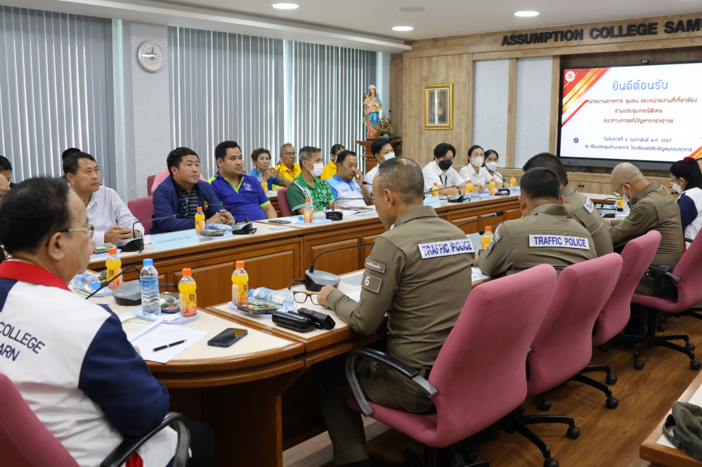 การประชุมปรึกษาหารือการจราจร โดยมีผู้แทนเทศบาลตำบลบางเมือง สารวัตรจราจร สภอ.เมืองสมุทรปราการ, สารวัตรจราจร สภอ. สำโรงเหนือ,ฝ่ายบริหารโรงเรียนเซนต์โยเซฟทิพวัล, ผู้แทนชุมชนทิพวัล ผู้แทนชุมชนท่านผู้หญิง ร่วมกับโรงเรียนอัสสัมชัญสมุทรปราการ มาร่วมประชุมปรึกษาหารือเพื่อร่วมกันแก้ไขปัญหาจราจรบริเวณโดยรอบโรงเรียนอัสสัมชัญสมุทรปราการ โรงเรียนเซนต์โยเซฟทิพวัล ชุมชนทิพวัล และชุมชนท่านผู้หญิง ในวันอังคารที่ 6 กุมภาพันธ์ 2567 ณ ห้องประชุมอำนวยการ โรงเรียนอัสสัมชัญสมุทรปราการ