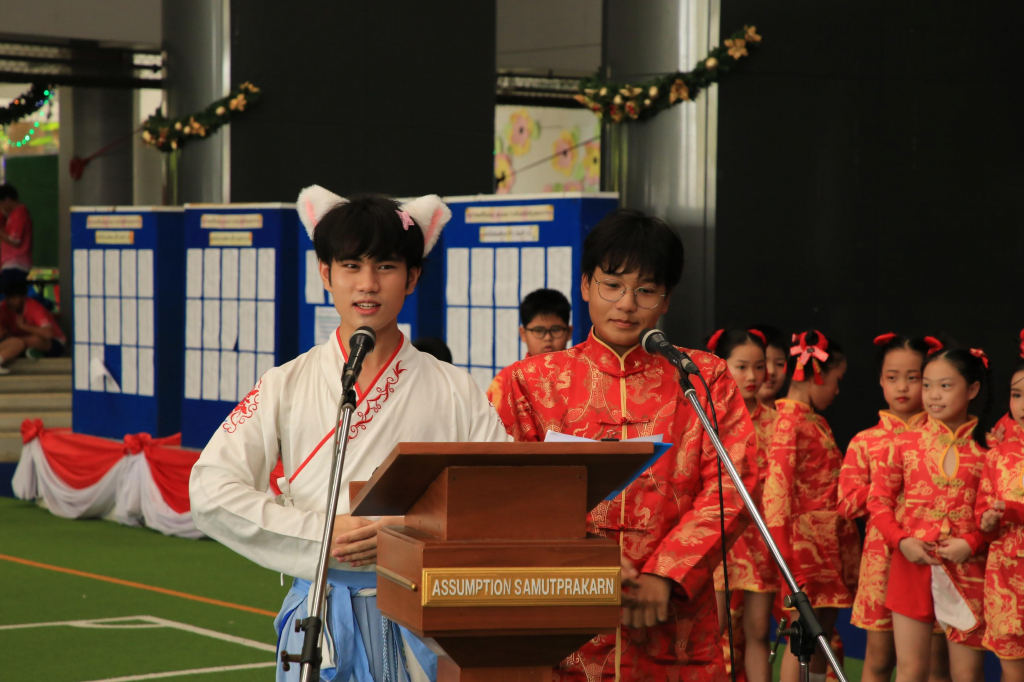 โดยมีภราดา ดร.มณฑล ประทุมราช ผู้อำนวยการโรงเรียนอัสสัมชัญสมุทรปราการเป็นประธานในพิธี พร้อมด้วย ภราดามานิต สกนธวัฒน์ รองผู้อำนวยการ ภราดาณัฐธร สุพล รองผู้อำนวยการ พร้อมด้วยคณะที่ปรึกษาผู้อำนวยการ เข้าร่วมพิธี ภายในกิจกรรมยังมีพิธีเชิดสิงโตและกิจกรรมการแสดงจากนักเรียนภาษาต่างประเทศ(ภาษาตะวันออก จีน) ภายในงาน
