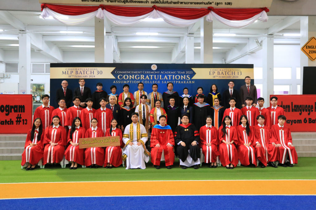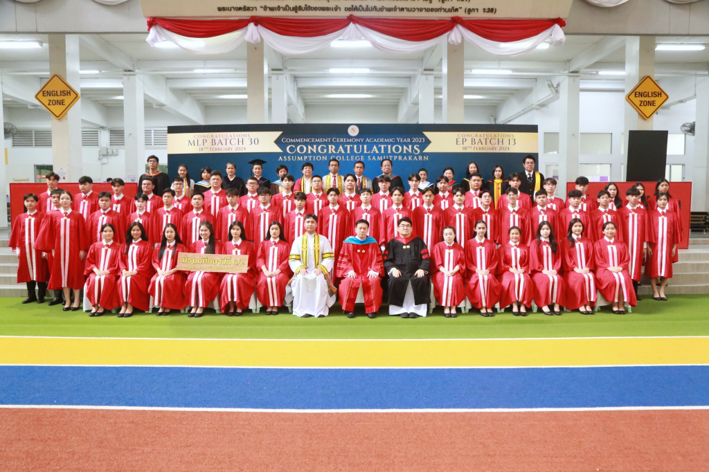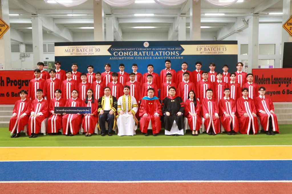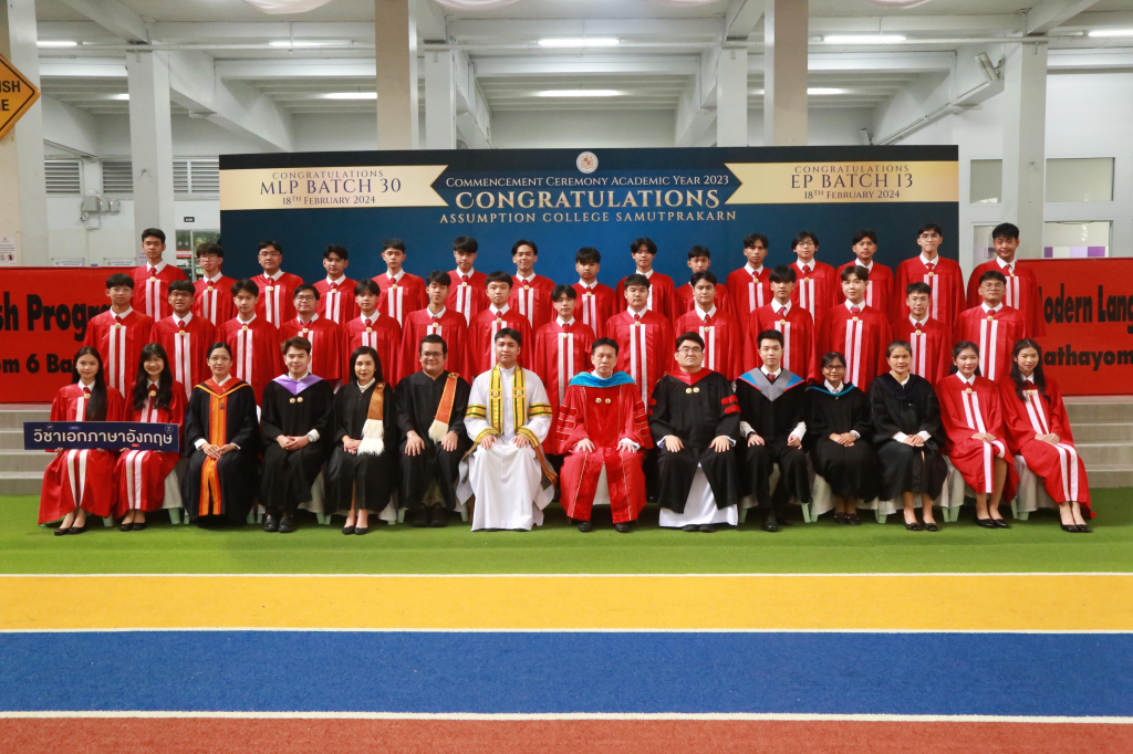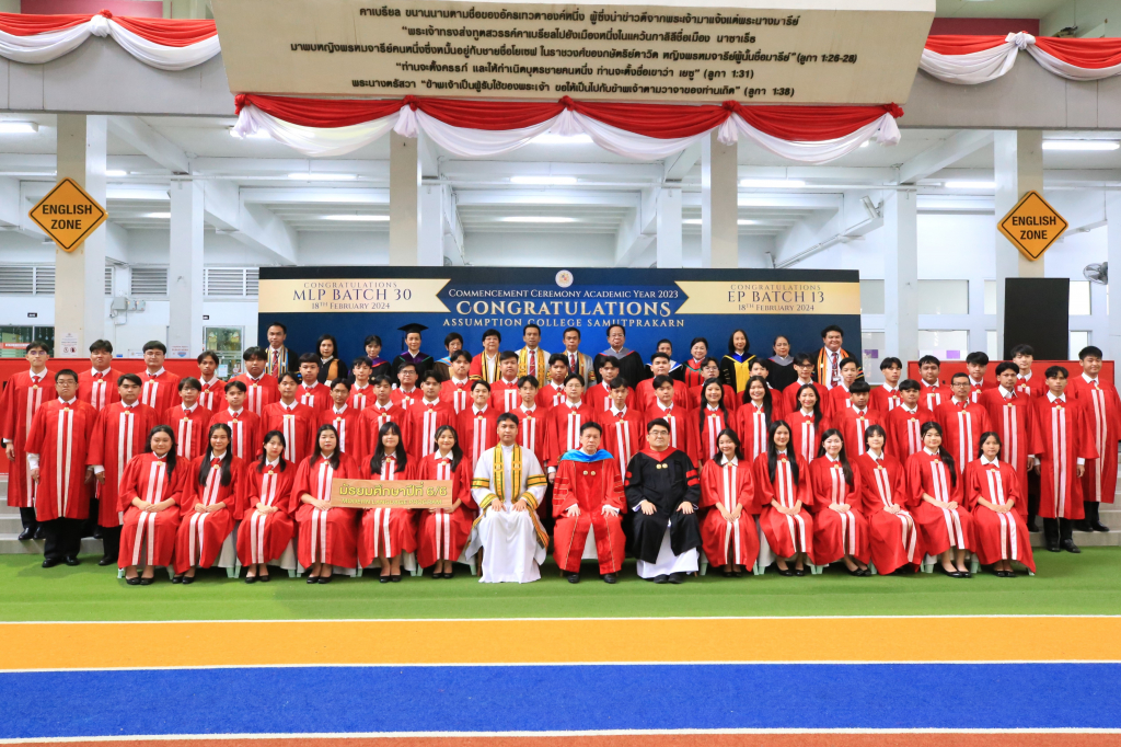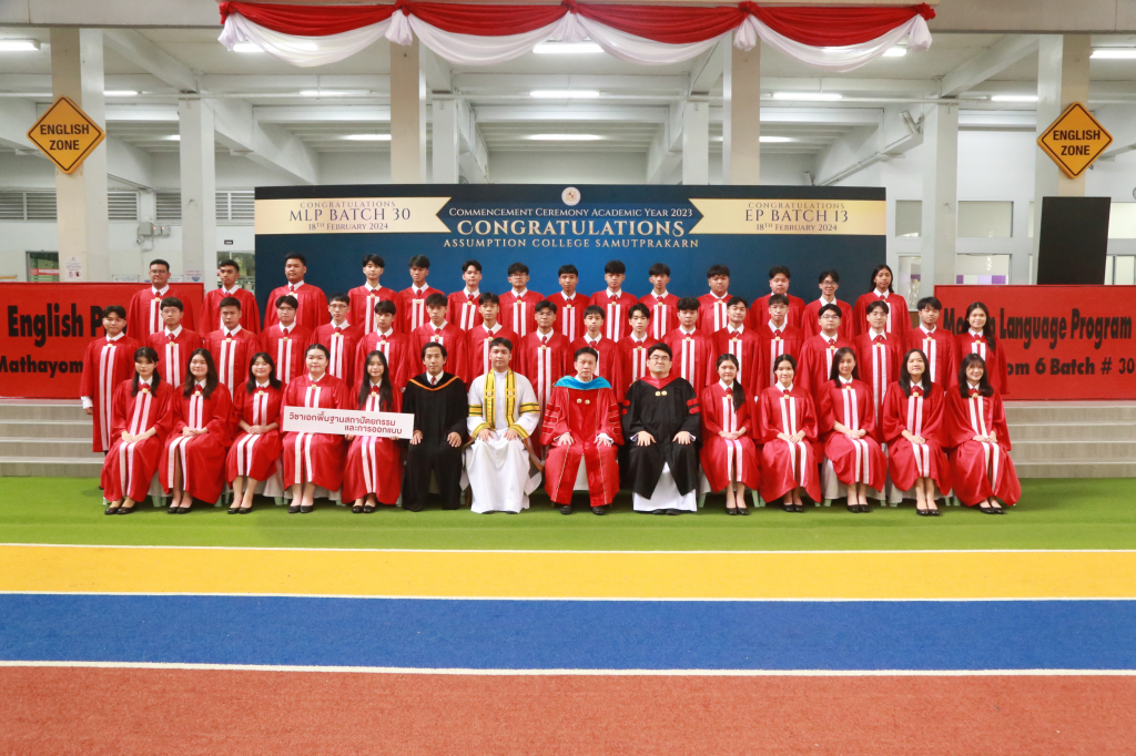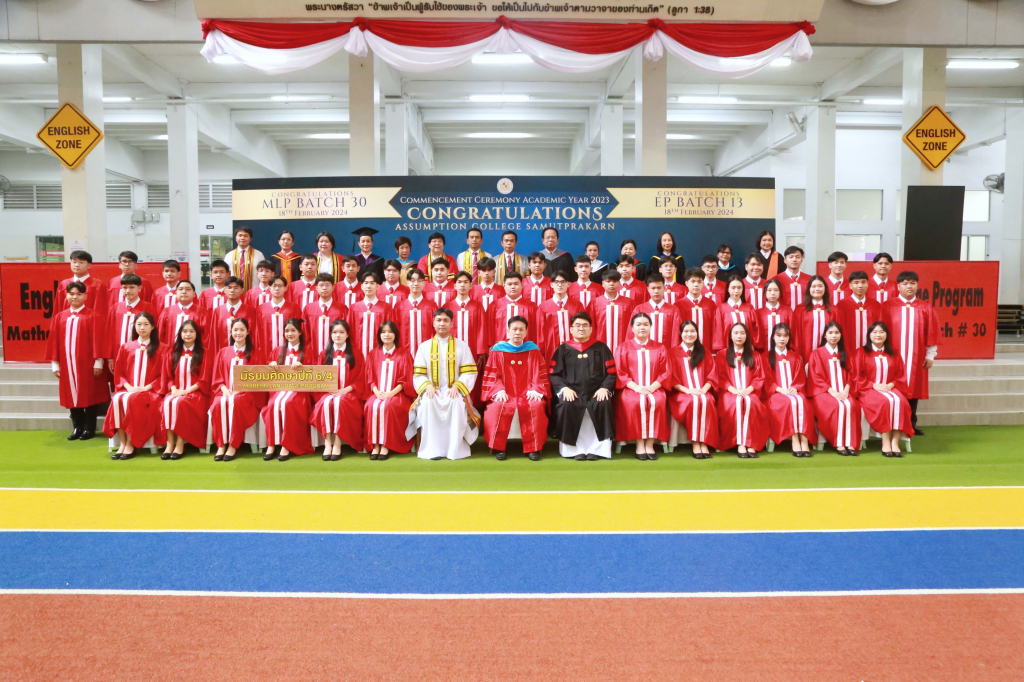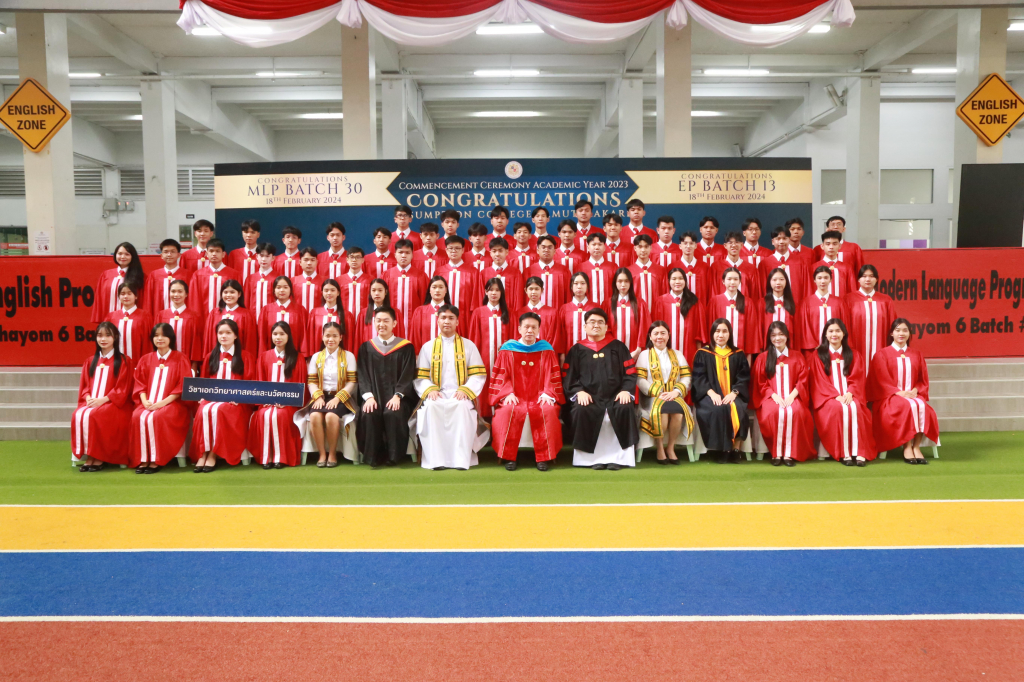 ภราดา ดร.มณฑล ประทุมราช ผู้อำนวยการ ภราดา มานิต สกนธวัฒน์ ภราดา ณัฐธร สุพล รองผู้อำนวยการ และคณะครูผู้ฝึกสอน บันทึกภาพร่วมกับ นักเรียนมัธยมศึกษาปีที่ 6 MLP รุ่น 30 และ EP รุ่น 13 ประจำทั้ง 14 วิชาเอก ประจำปีการศึกษา 2566