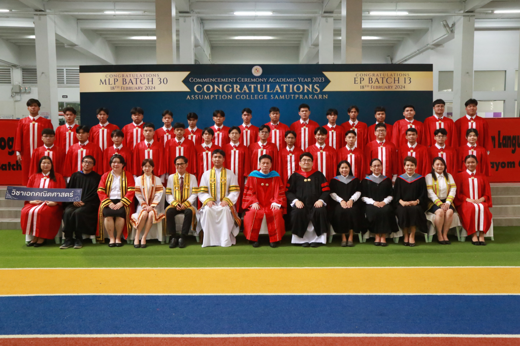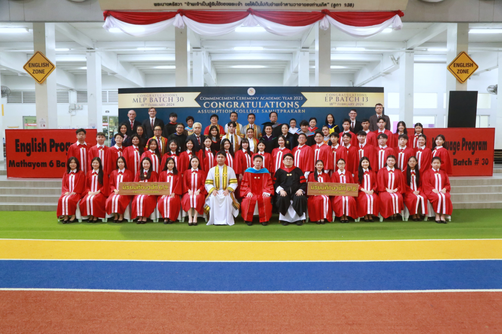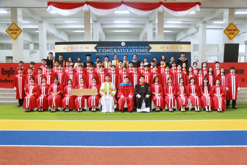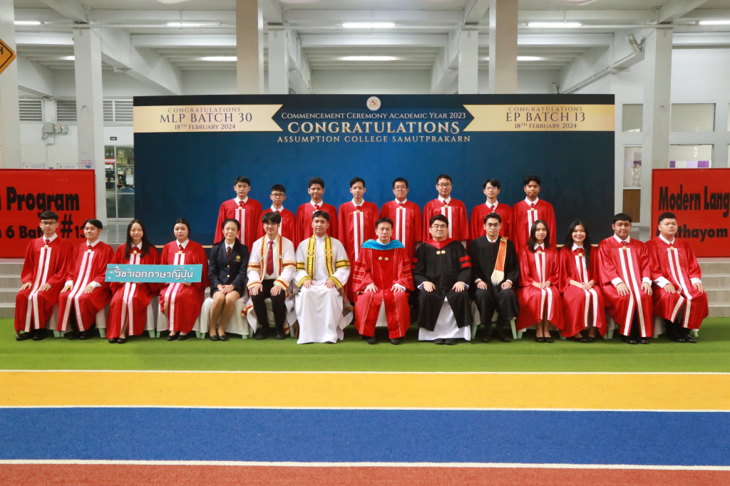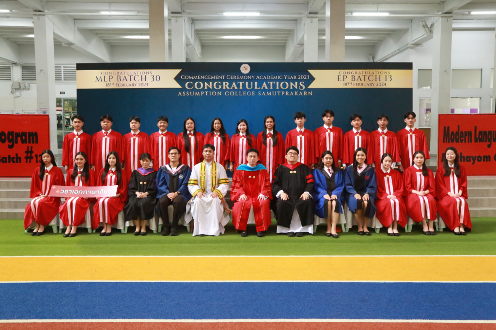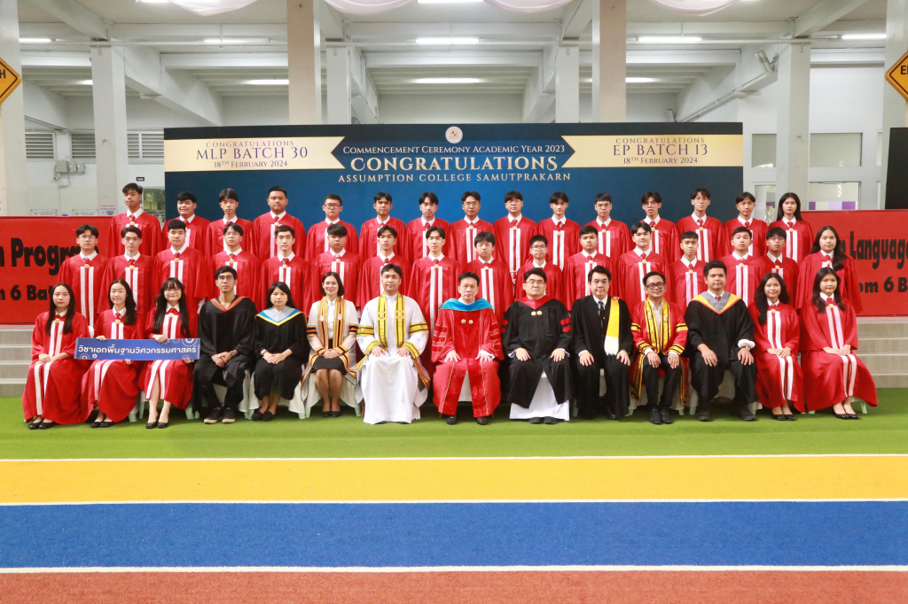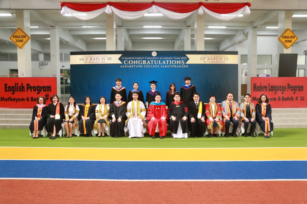 ภราดา ดร.มณฑล ประทุมราช ผู้อำนวยการ ภราดา มานิต สกนธวัฒน์ ภราดา ณัฐธร สุพล รองผู้อำนวยการ และคณะครูผู้ฝึกสอน บันทึกภาพร่วมกับ นักเรียนมัธยมศึกษาปีที่ 6 MLP รุ่น 30 และ EP รุ่น 13 ประจำทั้ง 14 วิชาเอก ประจำปีการศึกษา 2566