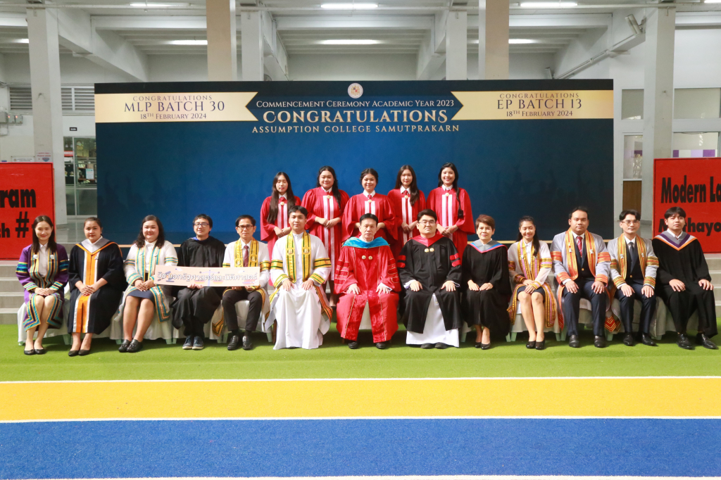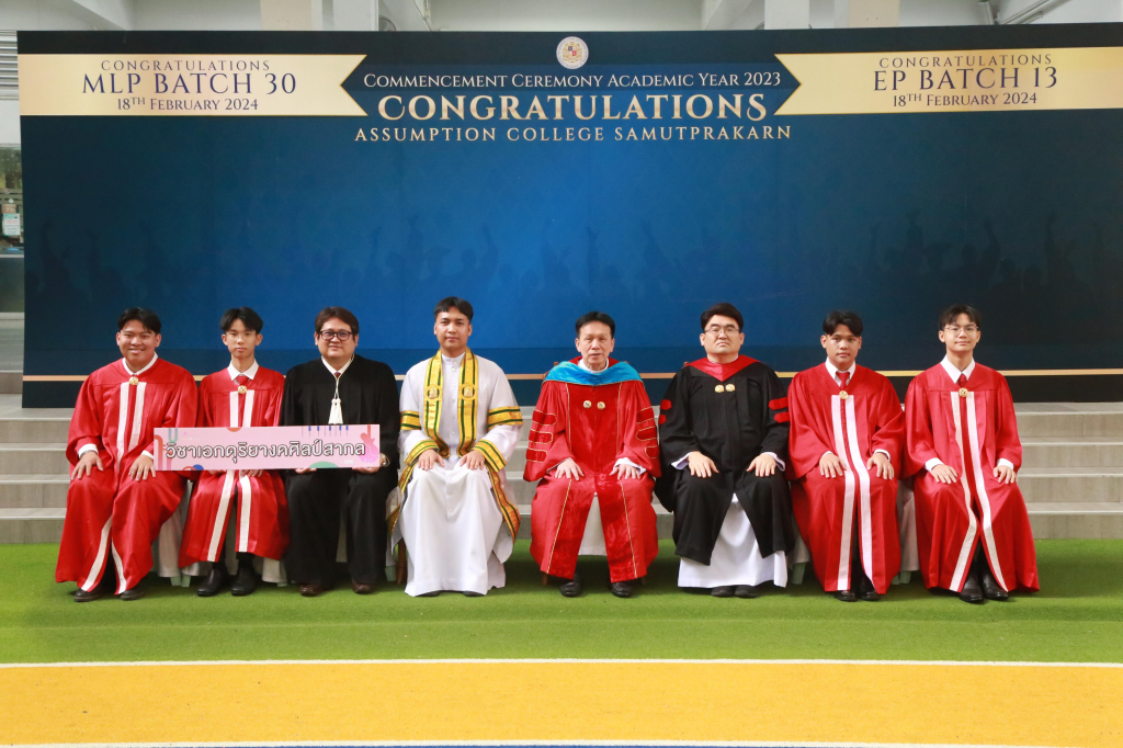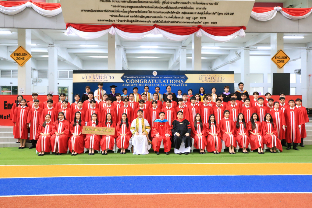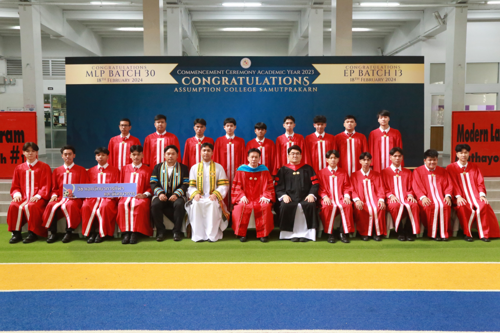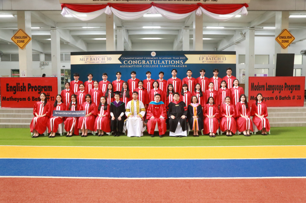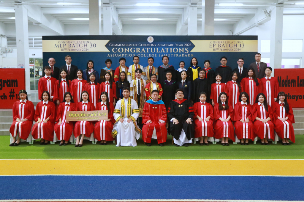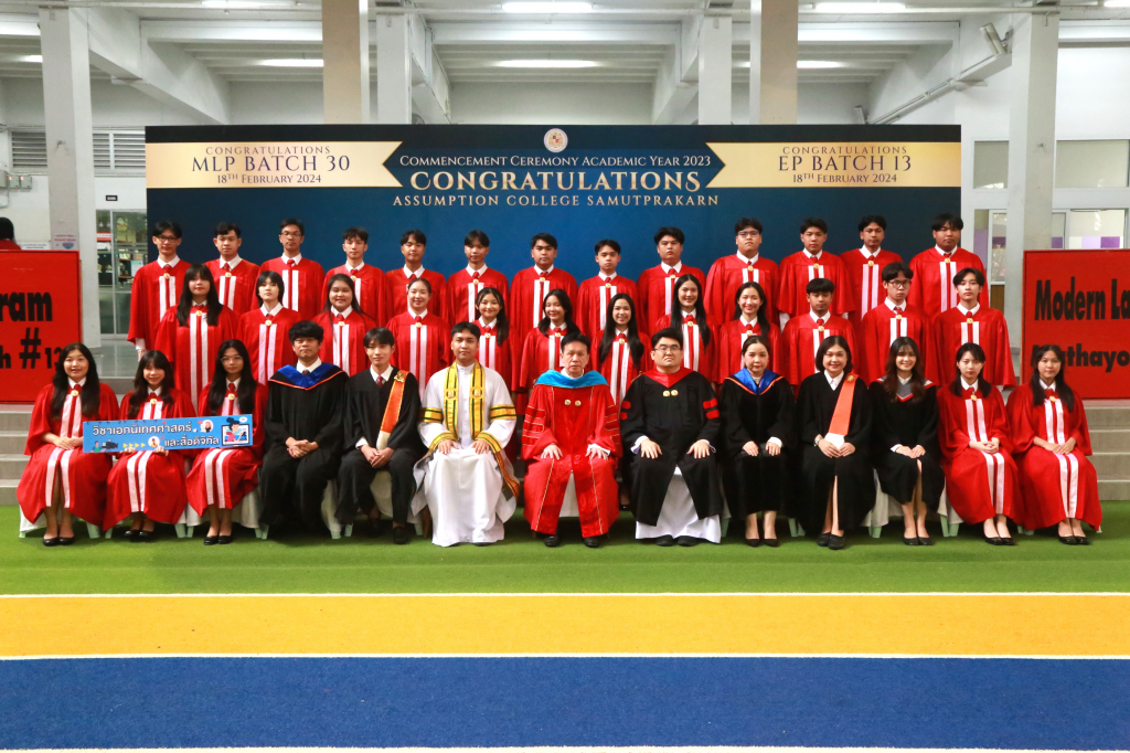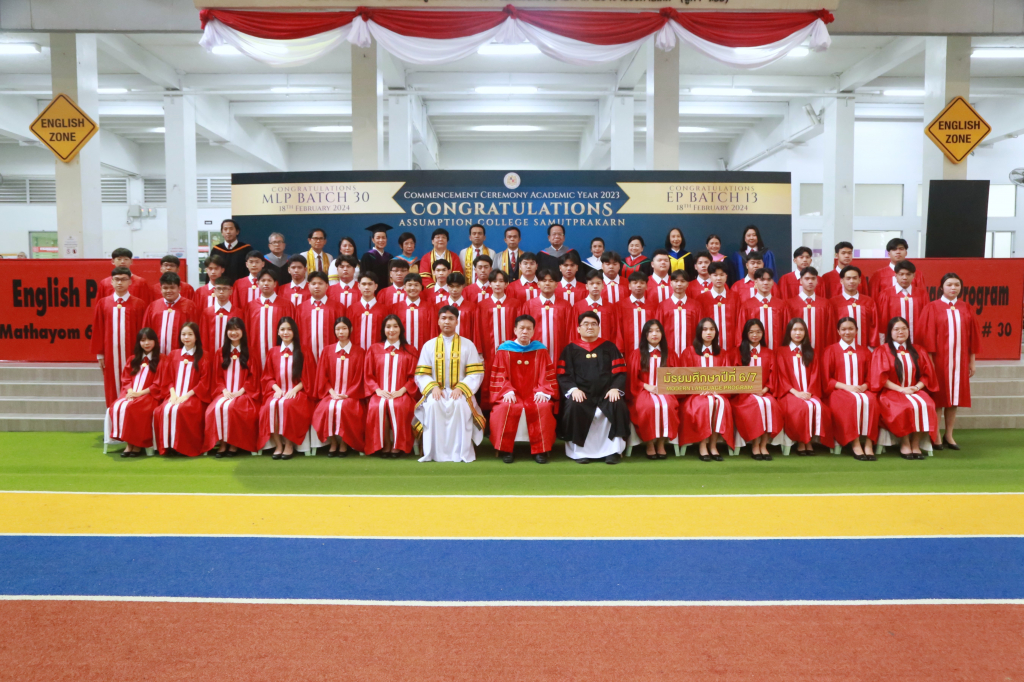ภราดา ดร.มณฑล ประทุมราช ผู้อำนวยการ ภราดา มานิต สกนธวัฒน์ ภราดา ณัฐธร สุพล รองผู้อำนวยการ และคณะครูผู้ฝึกสอน บันทึกภาพร่วมกับ นักเรียนมัธยมศึกษาปีที่ 6 MLP รุ่น 30 และ EP รุ่น 13 ประจำทั้ง 14 วิชาเอก ประจำปีการศึกษา 2566