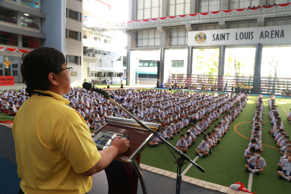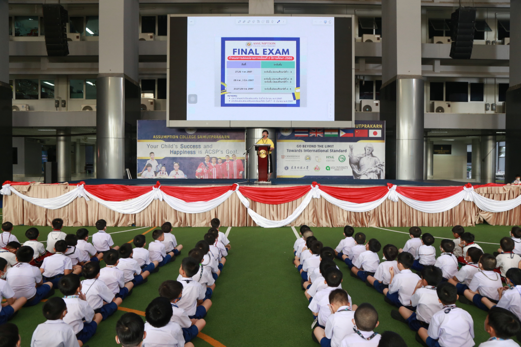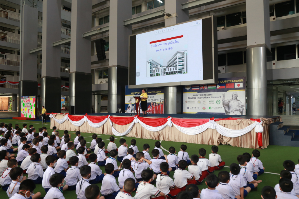 ในวันจันทร์ที่ 19 กุมภาพันธ์ พ.ศ.2567 มิสรุ่งรัตน์ กมลศิริประเสริฐ หัวหน้าฝ่ายวิชาการ ประชุมนักเรียนระดับประถมศึกษา ภาคเรียนที่2/2566 ณ บริเวณ Saint Louis Arena