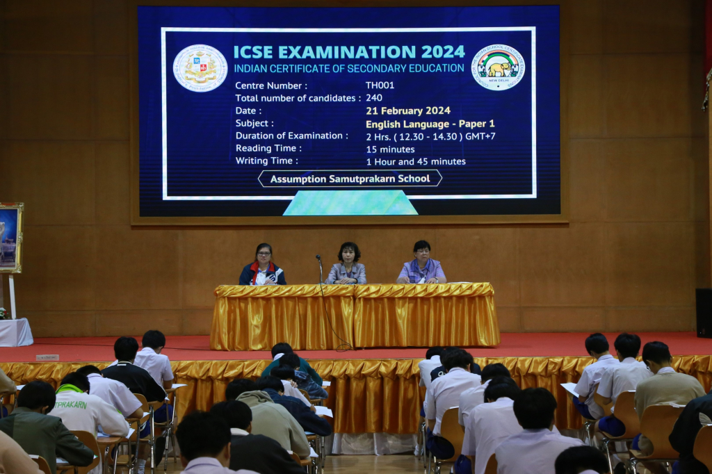ในวันพุธที่ 21 กุมภาพันธ์ พ.ศ.2567 ศูนย์สอบ ACSP International Standards Testing Centre (ISTC) จัดการสอบหลักสูตรมาตรฐานสากล ICSE EXAMINATION 2024 (INDIAN CERTIFICATE OF SECONDARY EDUCATION) ในรายวิชา English Language - Paper 1 ณ ห้องประชุมรัชตสมโภช และ ห้องประชุมMSC อาคารหลุยส์ มารี