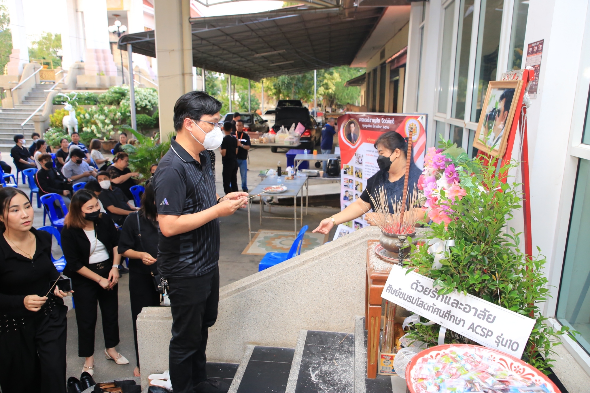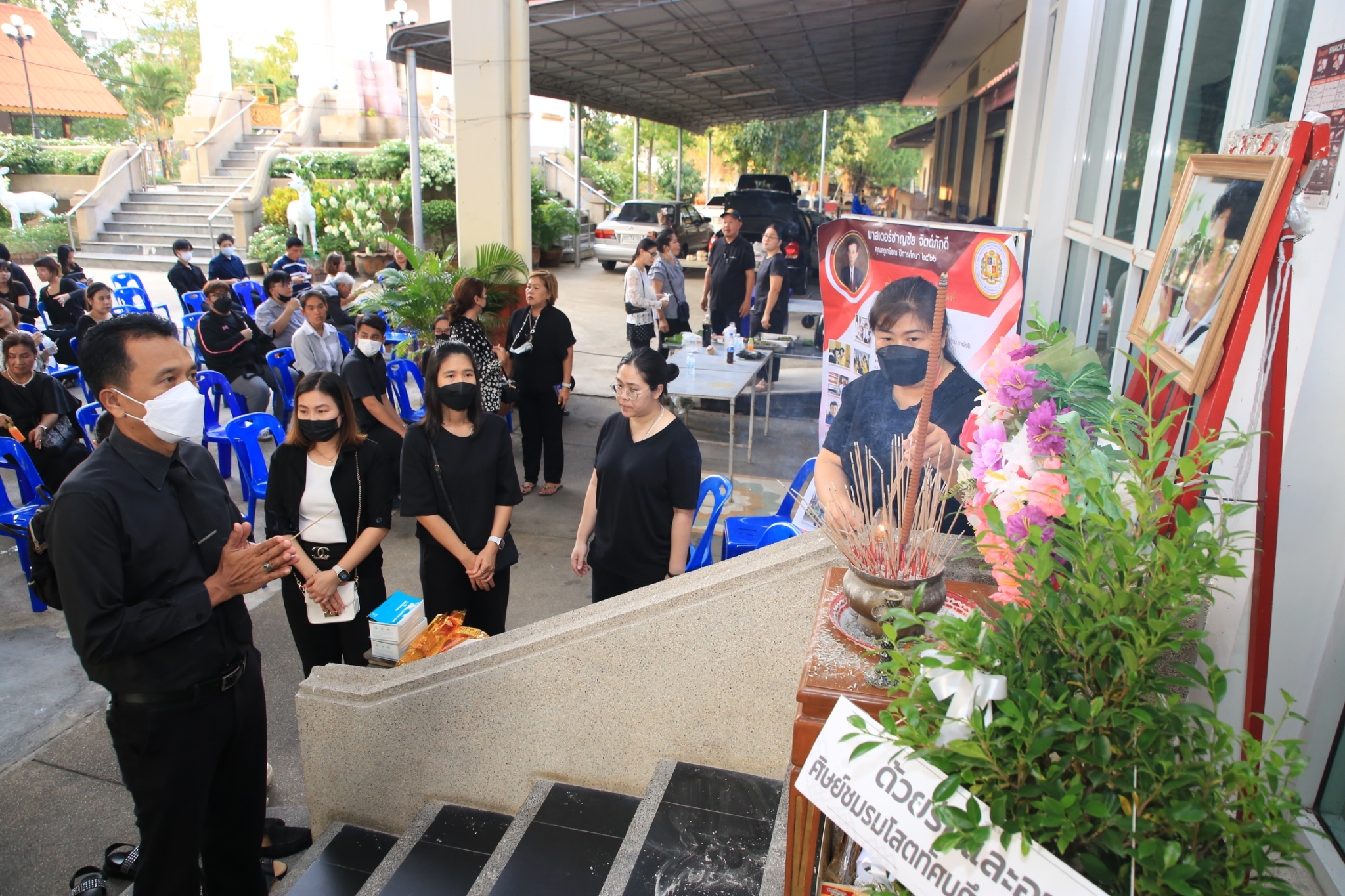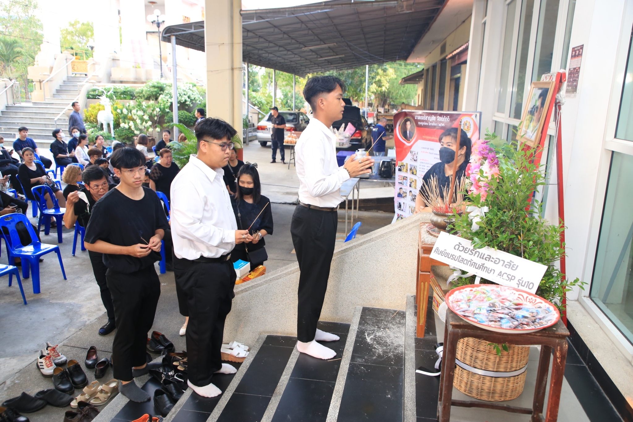 ภราดา ดร.มณฑล ประทุมราช ผู้อำนวยการ ภราดามานิต สกนธวัฒน์ รองผู้อำนวยการ ภราดาณัฐธร สุพล รองผู้อำนวยการ และคณะผู้ร่วมบริหาร และคณะผู้ร่วมบริหาร คณะครู บุคลากร พนักงาน นักเรียน ศิษย์เก่า และผู้ปกครองโรงเรียนอัสสัมชัญสมุทรปราการ เข้าร่วมพิธีฌาปนกิจ ม.ชาญชัย จิตต์ภักดี ณ ศาลาสามัคคีธรรม (ศาลาติดแอร์) วัดบางนางเกรง จ.สมุทรปราการ