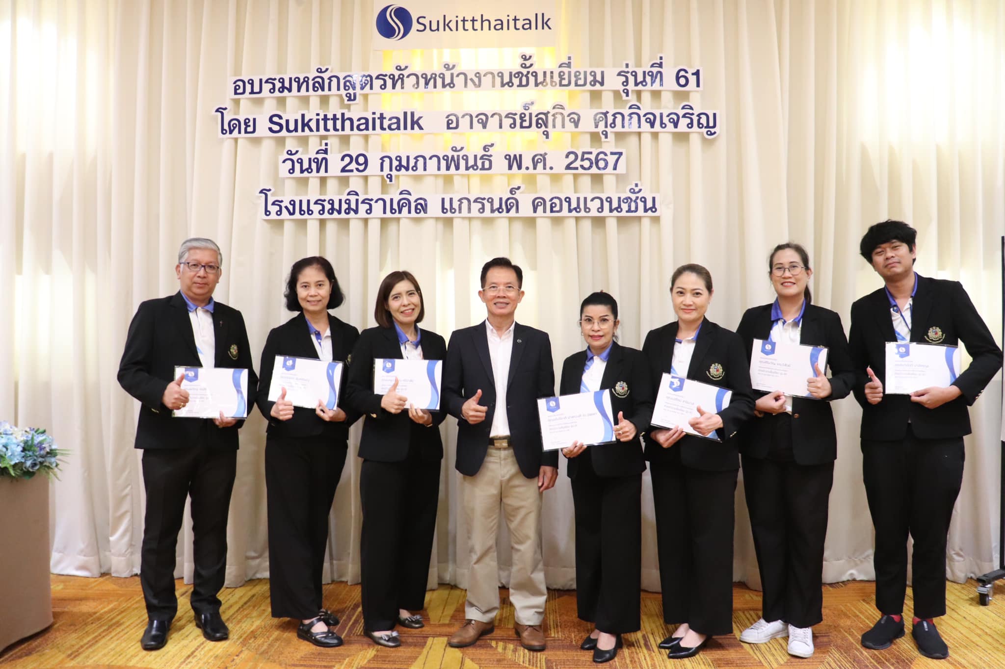 ฝ่ายธุรการเข้าอบรมหลักสูตรหัวหน้างานชั้นเยี่ยม รุ่นที่ 61 โดย อาจารย์สุกิจ ศุภกิจเจริญ วันพฤหัสบดีที่ 29 กุมภาพันธ์ พ.ศ.2567 ณ โรงแรมมิราเคิล แกรนด์ คอนเวนชั่น