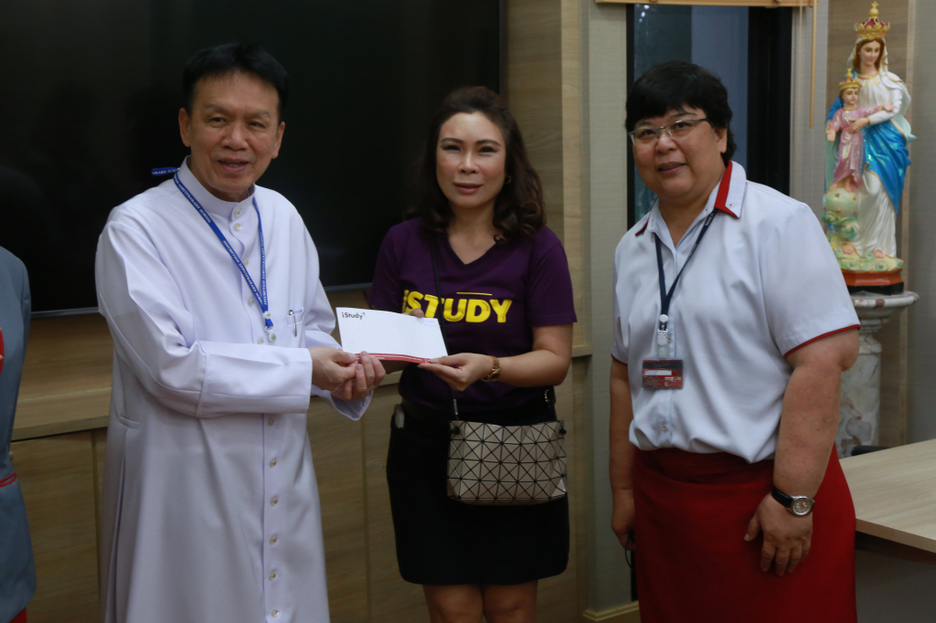 บริษัท i-Study เข้าพบ ภราดา ดร. มณฑล ประทุมราช ผู้อำนวยการ เพื่อมอบเงินสนับสนุนจากโครงการนักเรียนแลกเปลี่ยนอเมริกา สำหรับกิจกรรมของโรงเรียน