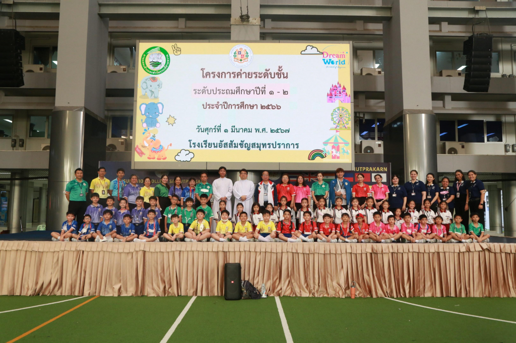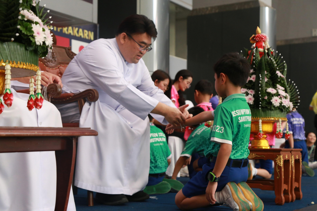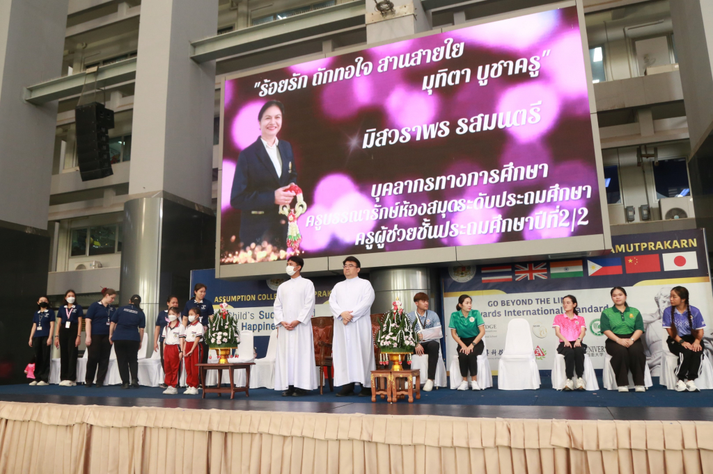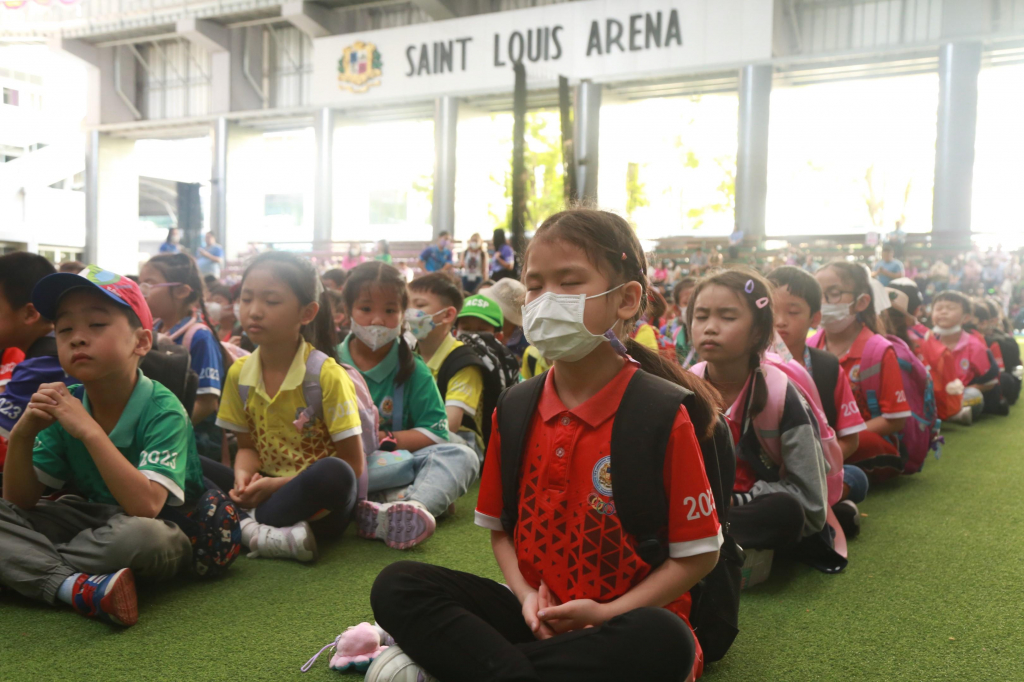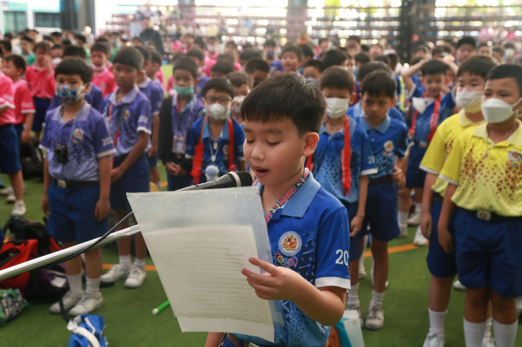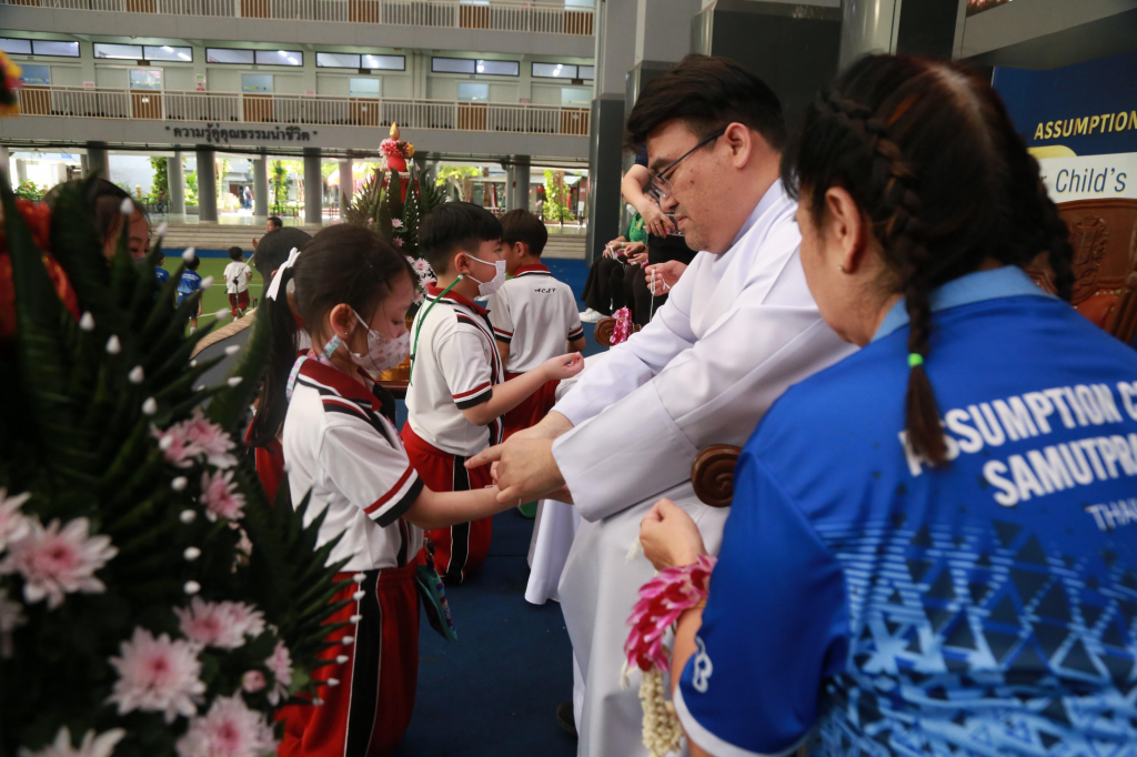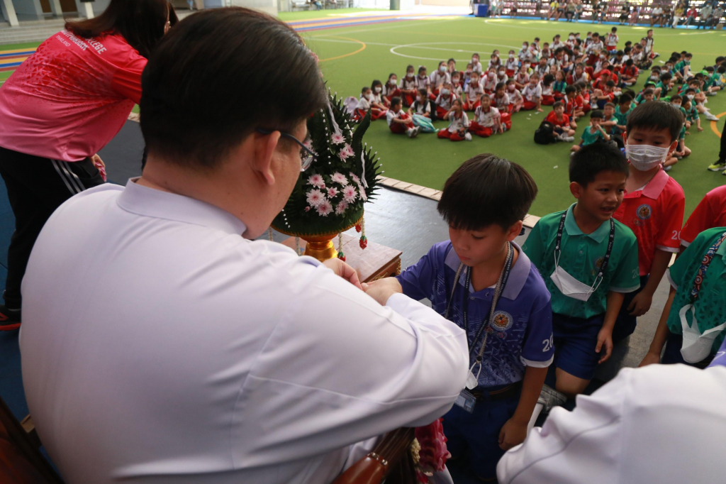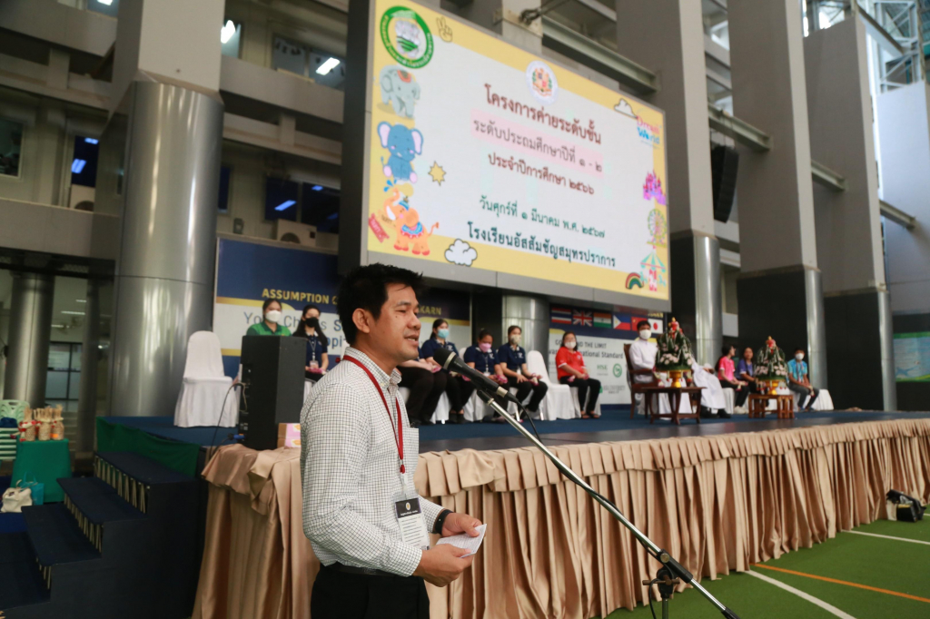 ภราดา มานิต สกนธวัฒน์ และภราดา ณัฐธร สุพล รองผู้อำนวยการ กล่าวให้โอวาทนักเรียนระดับชั้นประถมศึกษาปีที่ 1-2 กิจกรรมค่ายระดับชั้นและพิธี "ร้อยรัก ถักทอใจ สานสายใย มุทิตา บูชาครู" มิสวราพร รสมนตรี บุคลากรทางการศึกษา รักษ์ห้องสมุดระดับประถมศึกษา ครูผู้ช่วยชั้นประถมศึกษาปีที่ 2/2 ณ บริเวณ Saint Louis Arena