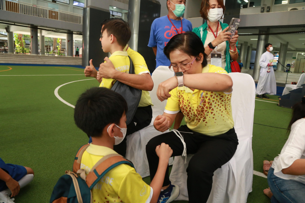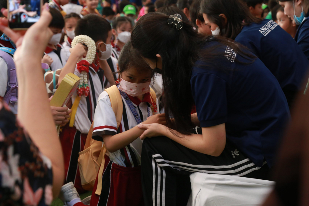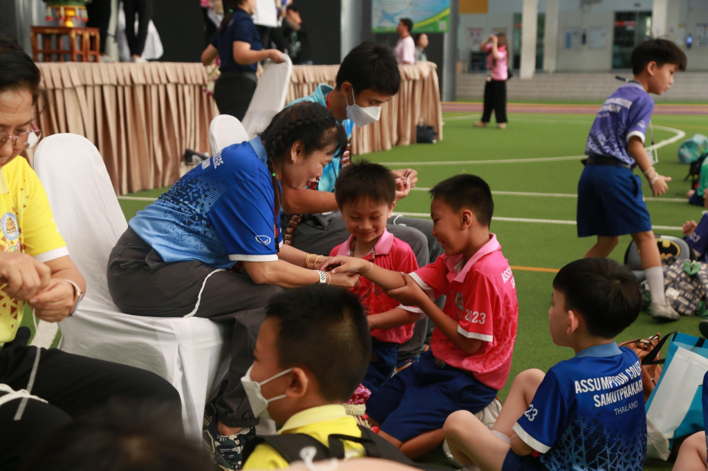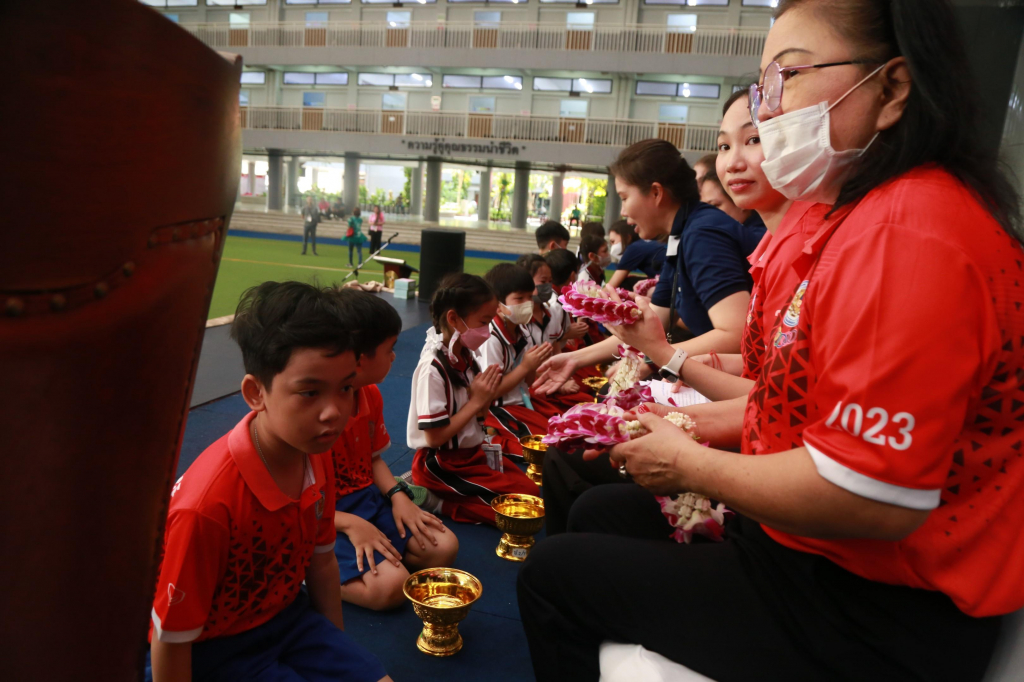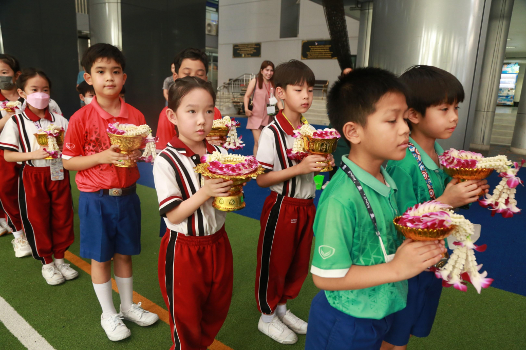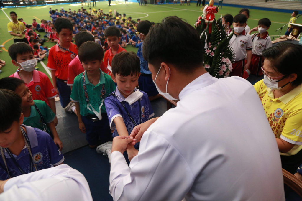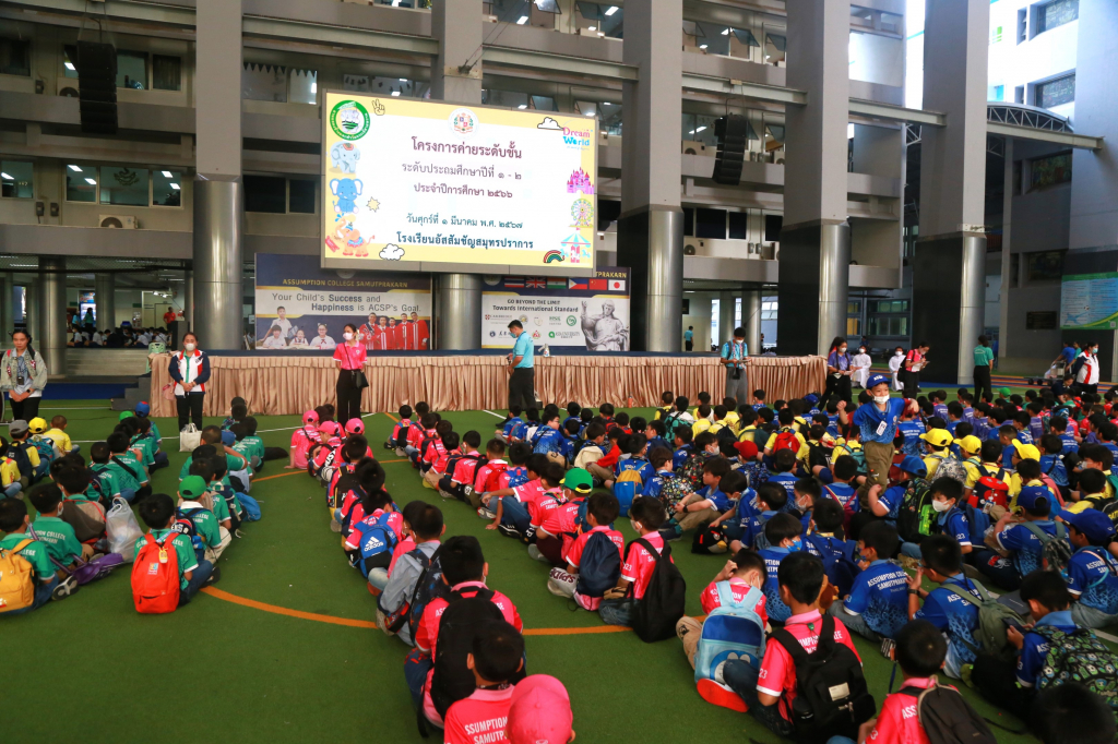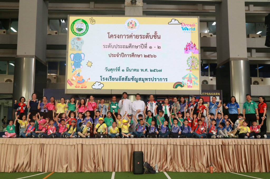 ภราดา มานิต สกนธวัฒน์ และภราดา ณัฐธร สุพล รองผู้อำนวยการ กล่าวให้โอวาทนักเรียนระดับชั้นประถมศึกษาปีที่ 1-2 กิจกรรมค่ายระดับชั้นและพิธี "ร้อยรัก ถักทอใจ สานสายใย มุทิตา บูชาครู" มิสวราพร รสมนตรี บุคลากรทางการศึกษา รักษ์ห้องสมุดระดับประถมศึกษา ครูผู้ช่วยชั้นประถมศึกษาปีที่ 2/2 ณ บริเวณ Saint Louis Arena