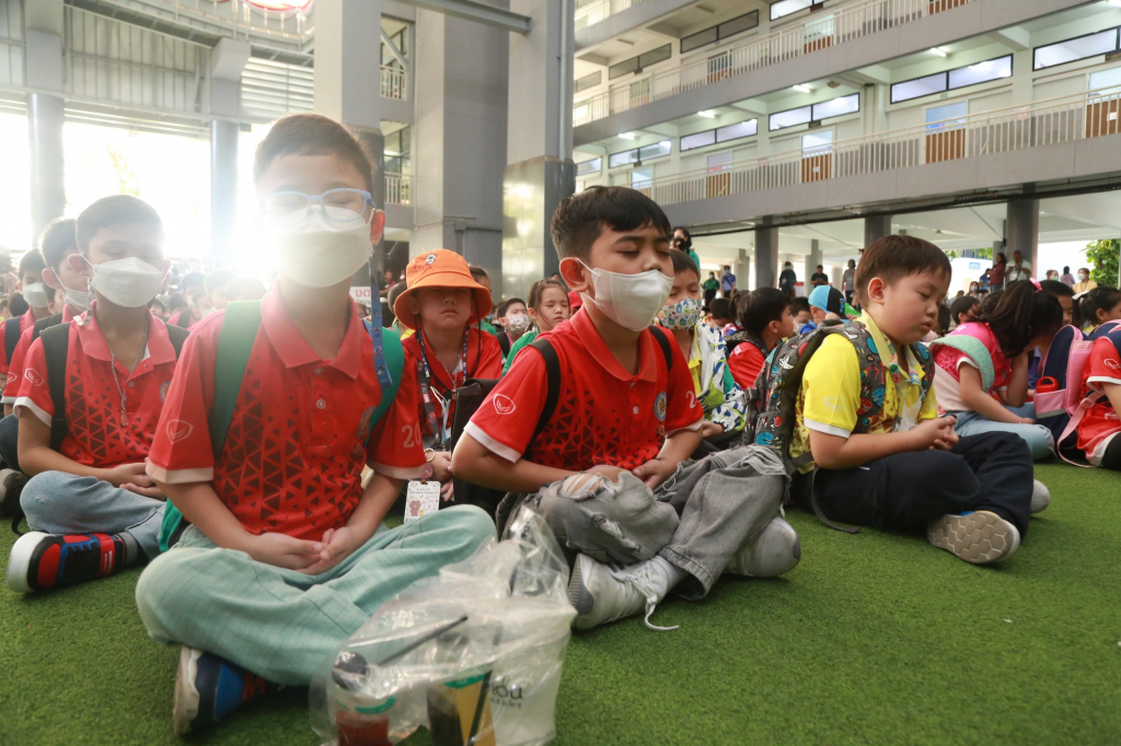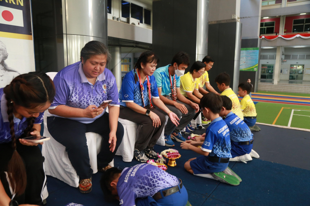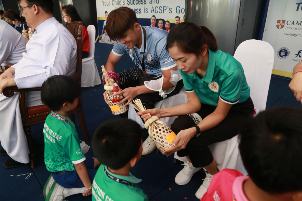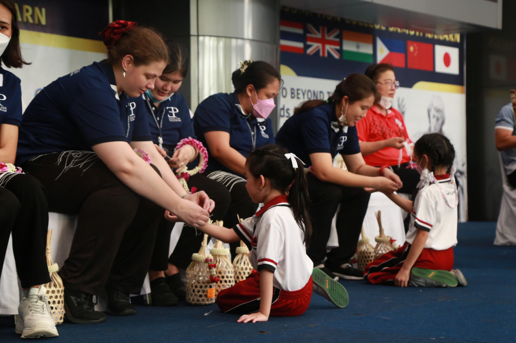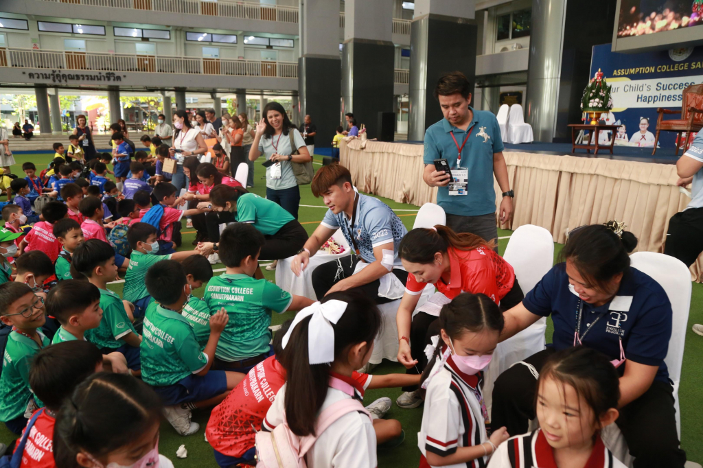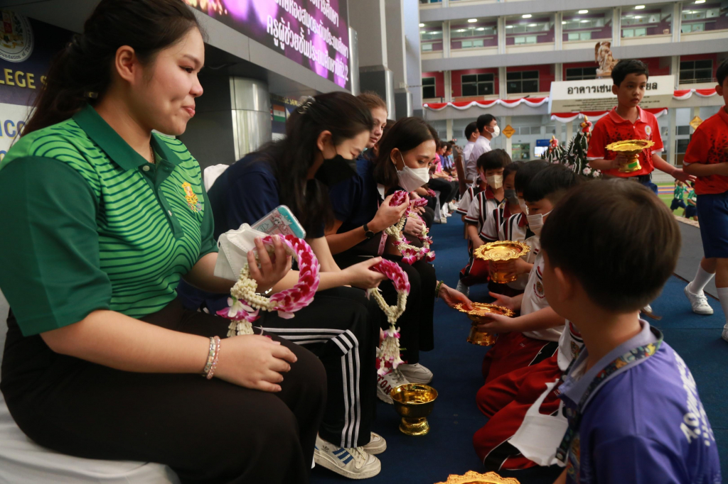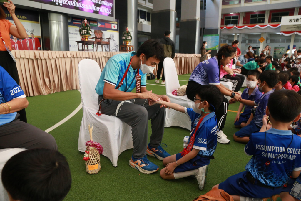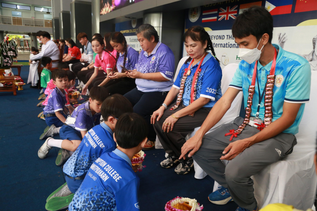 ภราดา มานิต สกนธวัฒน์ และภราดา ณัฐธร สุพล รองผู้อำนวยการ กล่าวให้โอวาทนักเรียนระดับชั้นประถมศึกษาปีที่ 1-2 กิจกรรมค่ายระดับชั้นและพิธี "ร้อยรัก ถักทอใจ สานสายใย มุทิตา บูชาครู" มิสวราพร รสมนตรี บุคลากรทางการศึกษา รักษ์ห้องสมุดระดับประถมศึกษา ครูผู้ช่วยชั้นประถมศึกษาปีที่ 2/2 ณ บริเวณ Saint Louis Arena