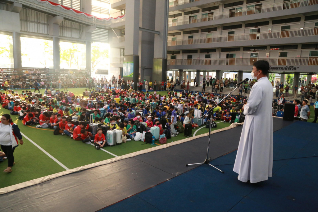 ภราดา ณัฐธร สุพล รองผู้อำนวยการ กล่าวให้โอวาทระดับชั้นประถมศึกษาปีที่ 3,4,5,6 และมัธยมศึกษาปีที่ 1 และ 3 ในกิจกรรมค่ายระดับ ณ บริเวณ Saint Louis Arena