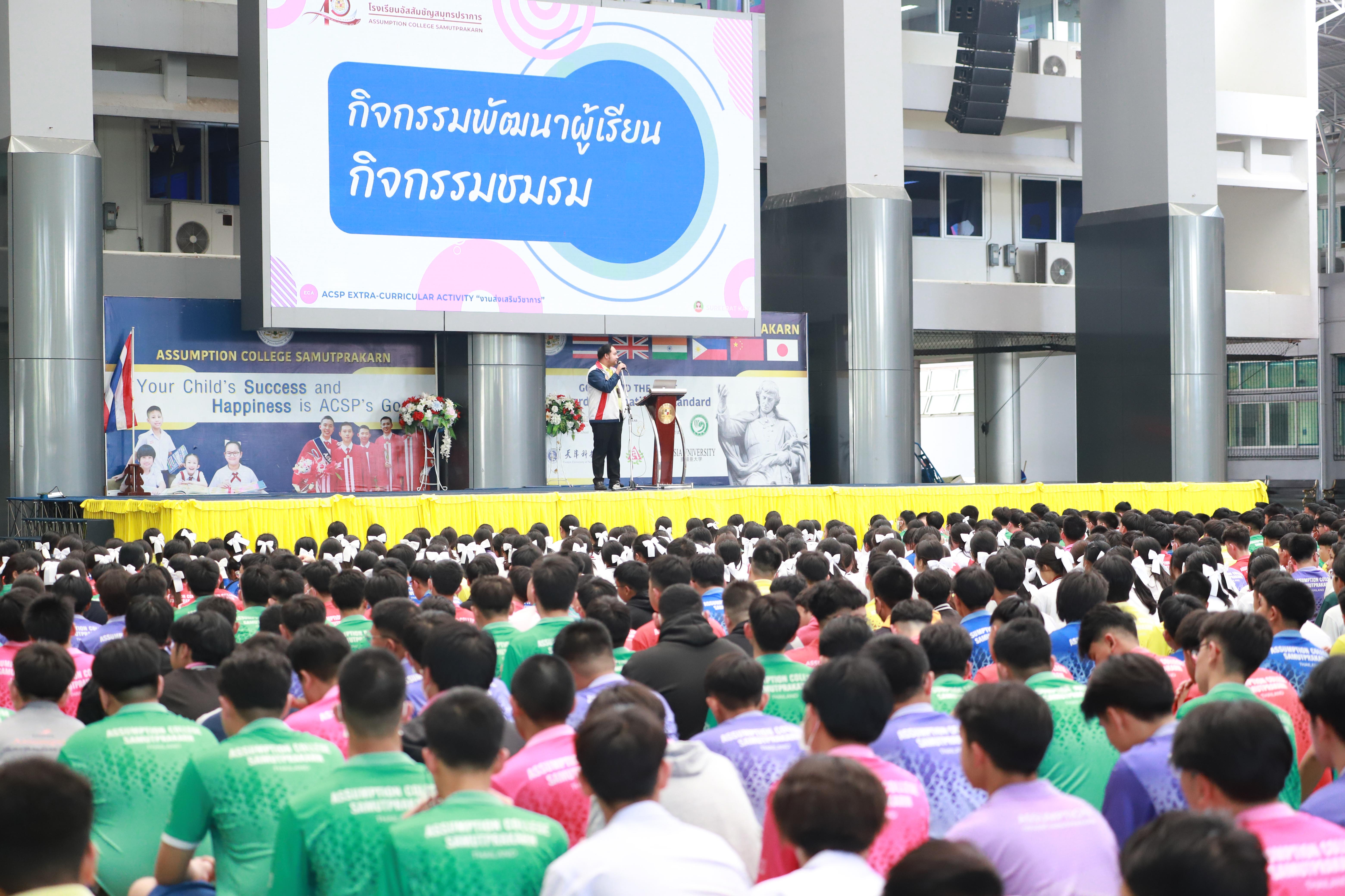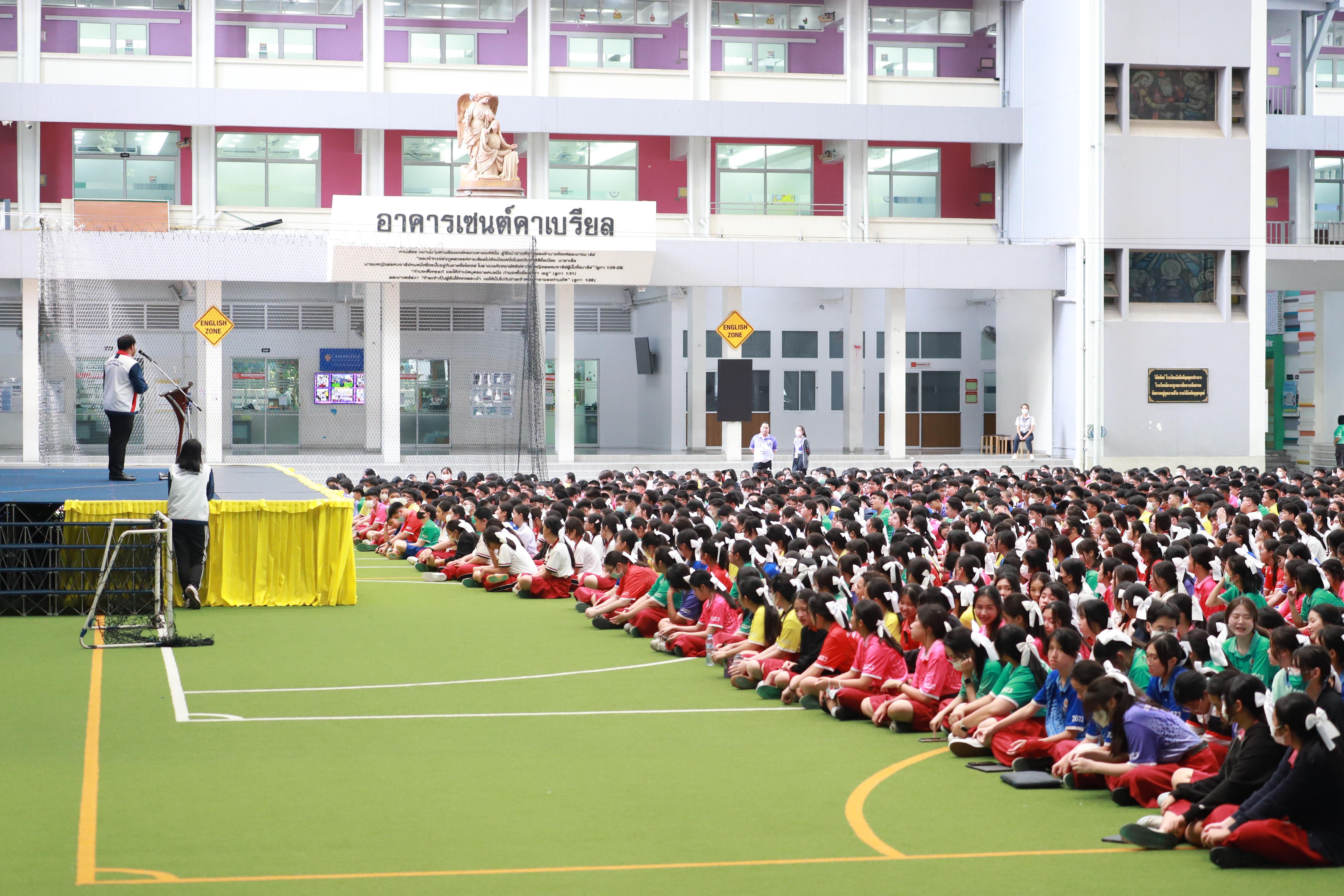 งานส่งเสริมวิชาการ จัดประชุมกิจกรรมพัฒนาผู้เรียน เรื่องกิจกรรมชมรม สำหรับนักเรียนระดับชั้นมัธยมศึกษาปีที่ 1-6 ณ บริเวณ Saint Louis Arena