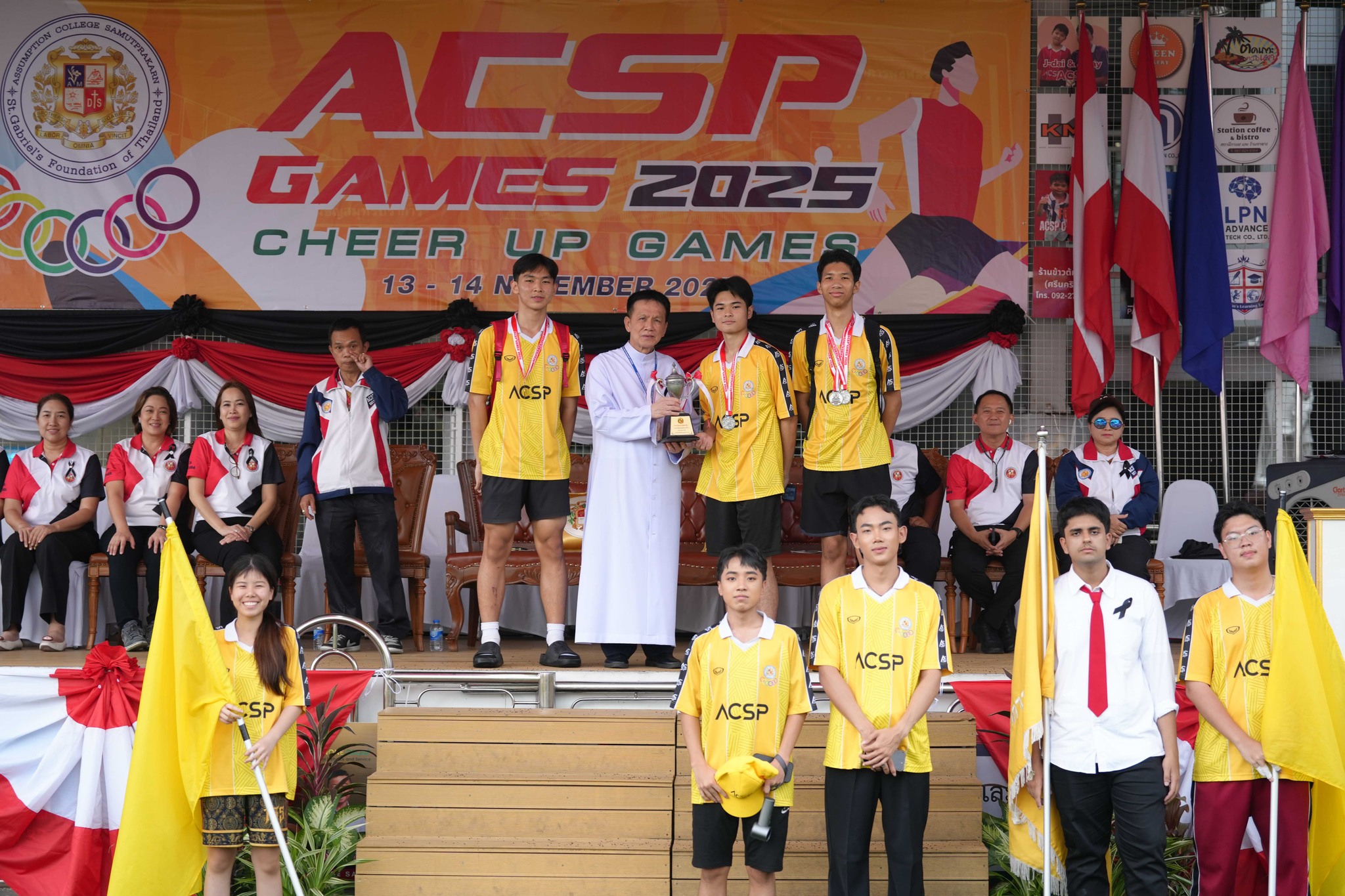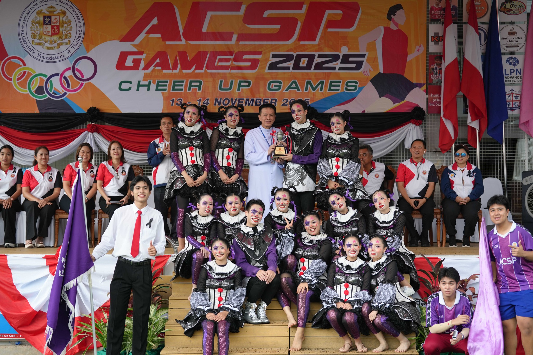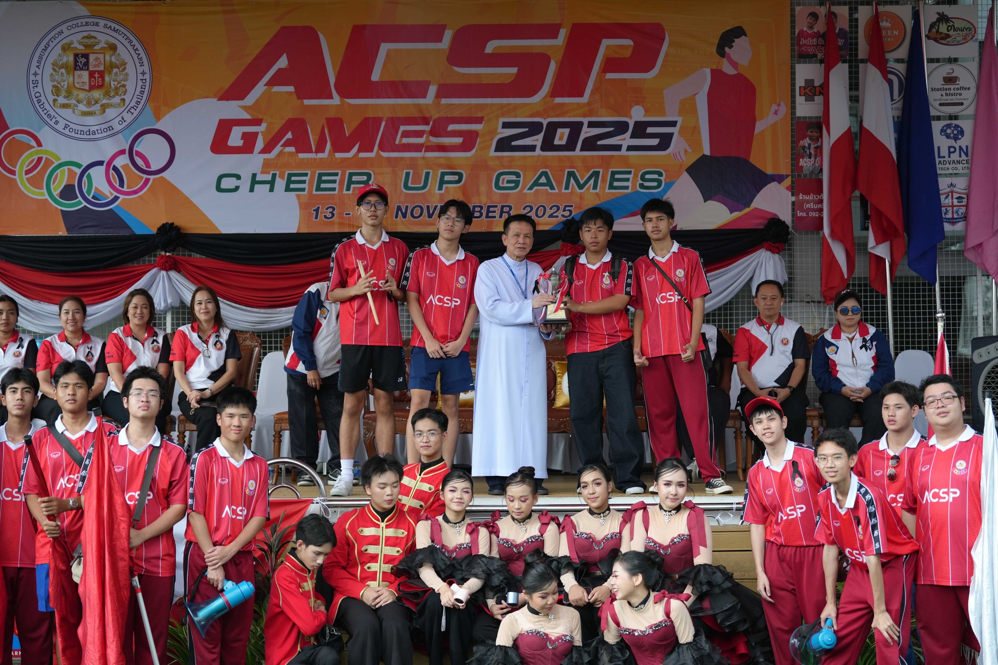 ในการดำเนินการจัดกิจกรรม ได้รับเกียรติจาก ภราดา ดร.สุรกิจ ศรีสราญกุลวงค์ ประธานมูลนิธิคณะเซนต์คาเบรียลแห่งประเทศไทย เป็นประธานในพิธีเปิดกีฬาสีนักเรียนในวันพฤหัสบดีที่ 13 พฤศจิกายน 2568 (ระดับมัธยมศึกษา) โดยมีภราดา ดร.มณฑล ประทุมราช ผู้อำนวยการโรงเรียนอัสสัมชัญสมุทรปราการ ให้การต้อนรับ พร้อมด้วย ภราดาภานุวัฒน์ เหมือนทับ ภราดากรกวี ยินดีเวท คณะกรรมการสมาคมผู้ปกครองและครูฯ คณะกรรมการผู้ปกครองเครือข่าย และคณะกรรมการที่ปรึกษาผู้อำนวยการ ซึ่งในพิธีเปิดได้เชิญวงโยธวาทิตโรงเรียนเซนต์โยเซฟทิพวัลมาร่วมในวันพฤหัสบดีที่ 13 พฤศจิกายน 2568 มาบรรเลิงเพลงร่วมกับวงโยธวาทิตโรงเรียนอัสสัมชัญสมุทรปราการ โดยกิจกรรมดังกล่าวมีผู้ปกครองทุกระดับชั้นได้เข้ามาให้กำลังใจกับบุตรหลาน ในการแข่งขันกรีฑาประเภทต่างๆ การประกวดกองเชียร์และลีดเดอร์ ซึ่งนักเรียนได้แสดงความสามารถทางด้านกีฬา รวมทั้งการแสดงออกด้านการเชียร์และผู้นำเชียร์ ส่งเสริมให้นักเรียน มีสุขภาพดี มีน้ำใจเป็นนักกีฬา รู้แพ้ รู้ชนะ รู้อภัย รวมทั้ง มีความรัก ความสามัคคีและทำงานร่วมกัน หลังจากจบการแข่งขันได้มีพิธีมอบถ้วยรางวัลประเภทต่างๆ โดยมี ภราดาดร.มณฑล ประทุมราช ผู้อำนวนการโรงเรียนเป็นประธานในพิธีปิดมัธยมศึกษาและคุณวิโรจน์ ศิริธนาศาสตร์ นายกสมาคมผู้ปกครองและครูฯ เป็นประธานในพิธีปิดระดับประถมศึกษา และร่วมถ่ายรูปกับทุกสี