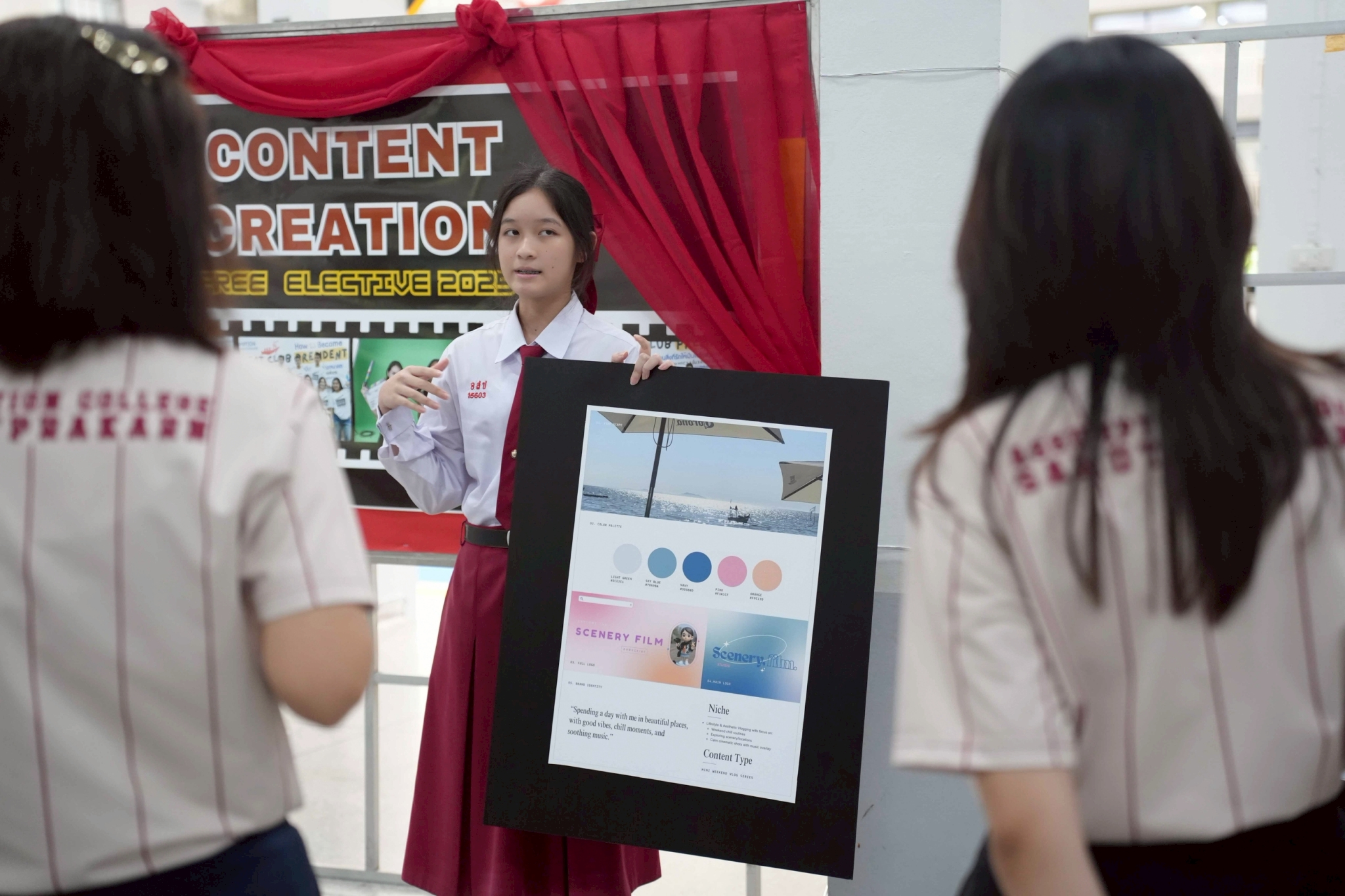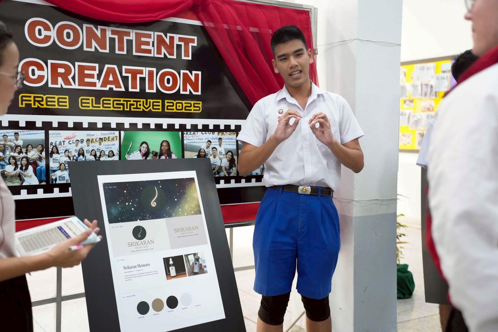 This semester, 11 seniors explored the exciting world of content creation and brand development, building both creative and business skills for the digital age. Instructed by Ms. Shanea Strachan and Ms. Piyachat Emkowit, students learned how to build their own brands and create original video content from concept to execution.