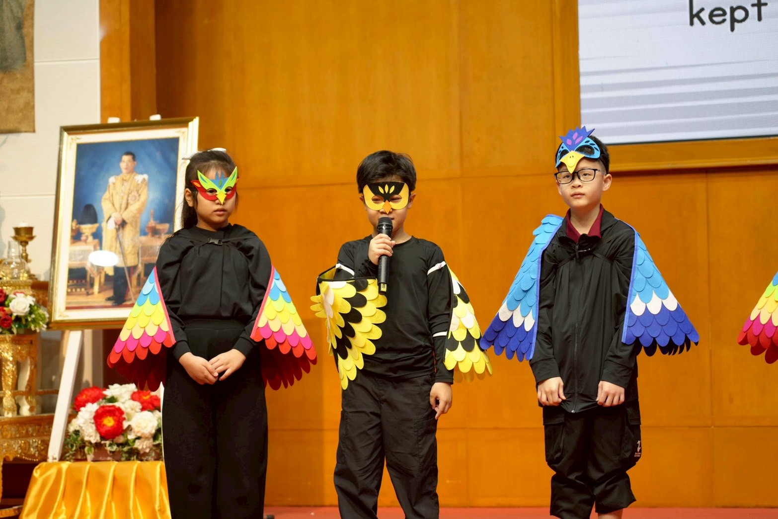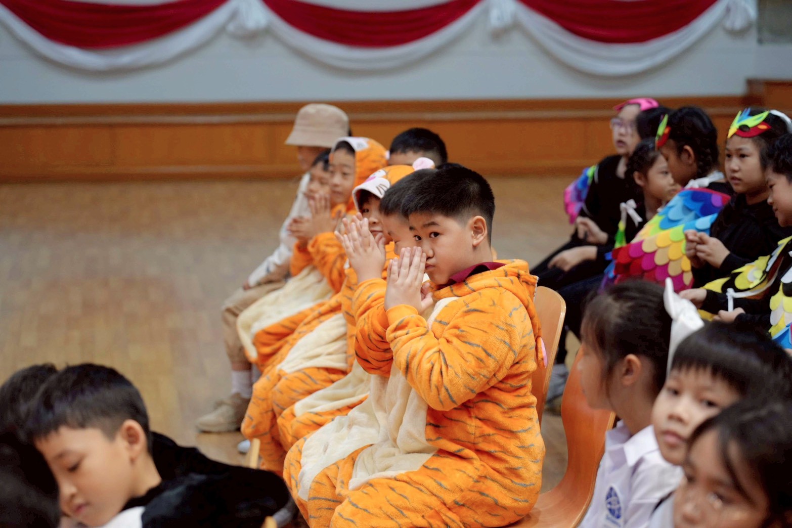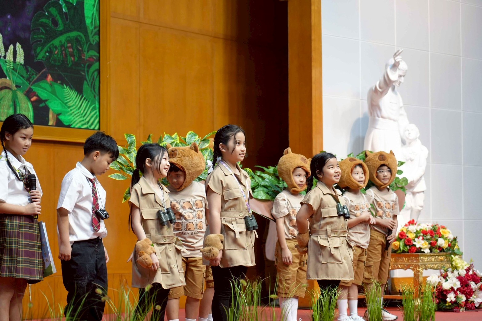 The judges, parents, and audience were captivated by the colorful and impressive presentations. The students prepared well, forming nine groups for presentation named after various animals: Tiger, Penguin, Giraffe, Parrot, Lion, Capybara, Moo Deng, Panda, and Elephant. Excitement filled the air, particularly among the teachers, parents, and organizers, who actively supported and collaborated in preparing the costumes, presentations, storyline, and props.