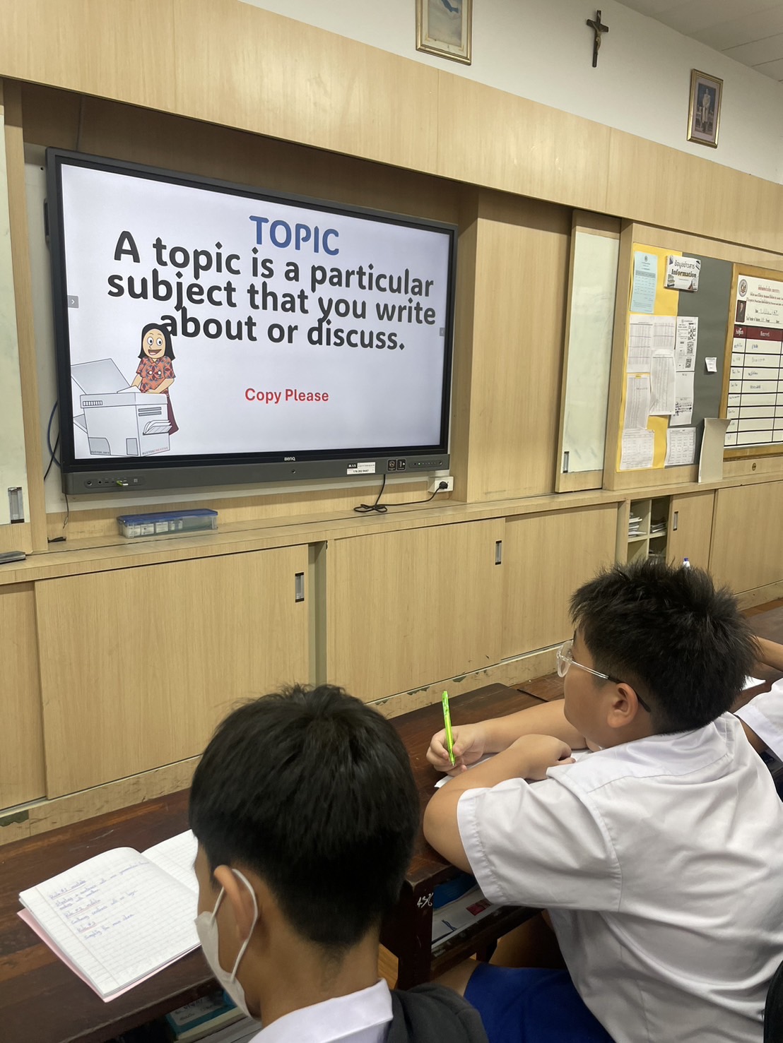 📑Today's activity for Secondary 1 was writing a topic sentence. There were two teachers, Master Shai Gutentag and Miss Wanarat Borwornmoth .During the lesson, the students warmed up with a game. Then, the teachers introduced the lesson with a short, fun video clip. The students used the clip as the topic of their writing. They expanded on it by adding supporting details from the video. The students worked together to fill in the body of the text, making it easy to understand. The activity was enjoyable, and the students collaborated as a team, writing the story together with enthusiasm.English is easy peasy📝📝📝✍️✍️✍️📑📑📑📑