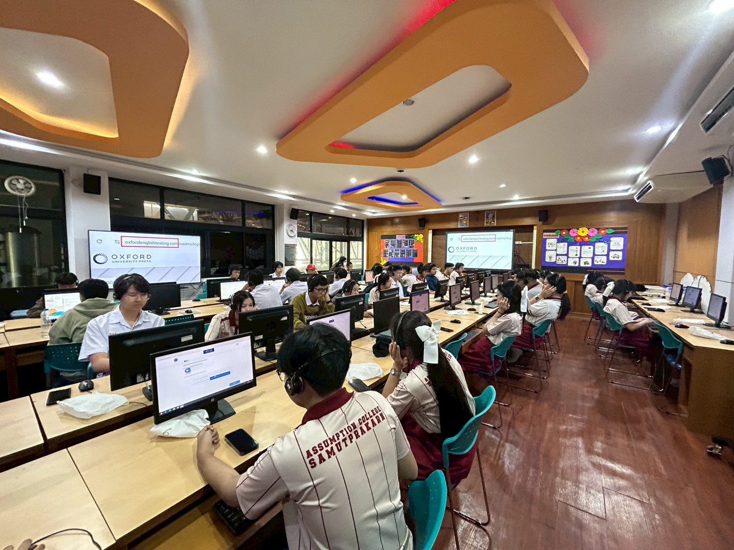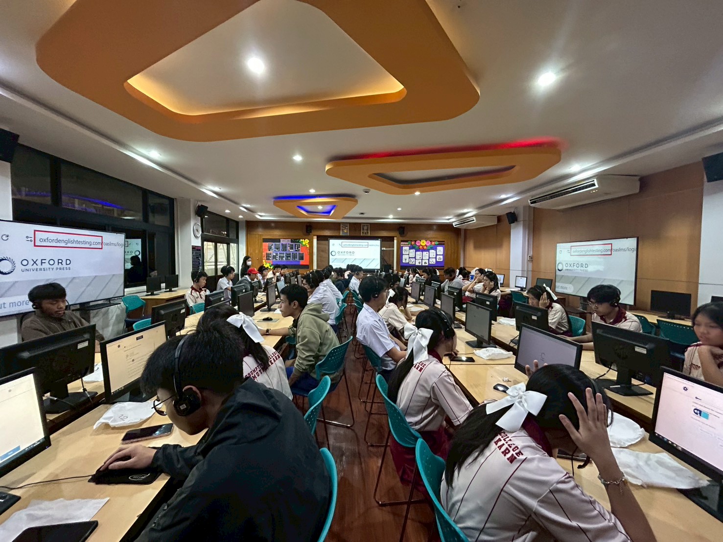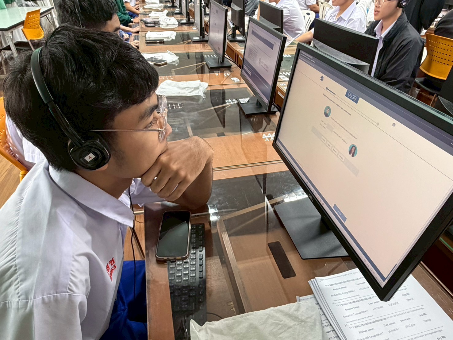 Students in Grade 12 are required to take an English standardized test to assess their proficiency according to the CEFR framework. The test session is scheduled from 27–31 October, and students from the Modern Language Program (Rooms 1–7) are participating in the placement examination.