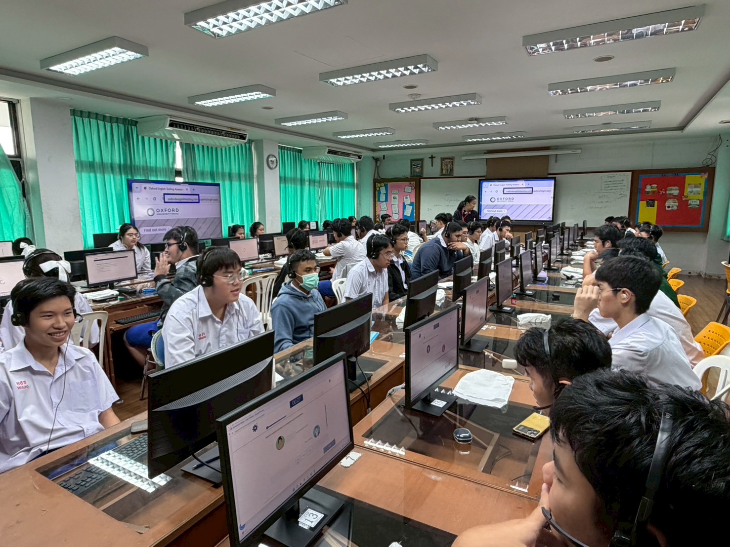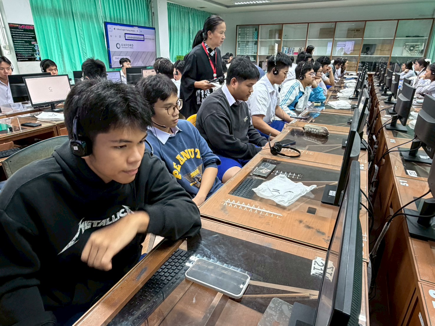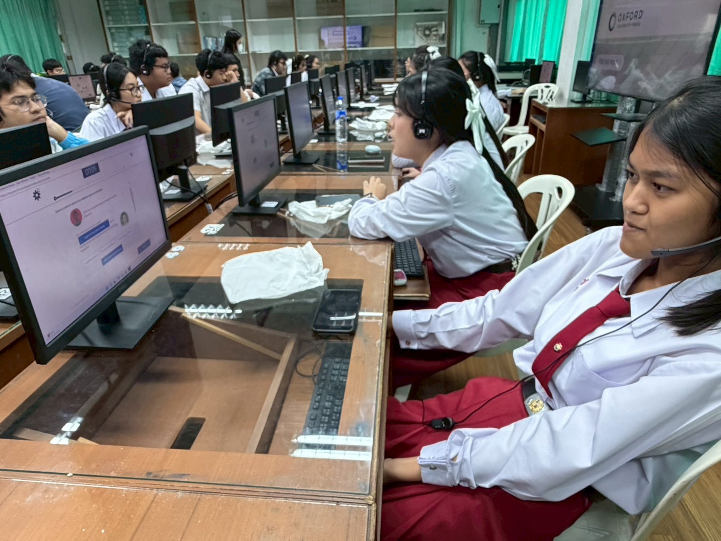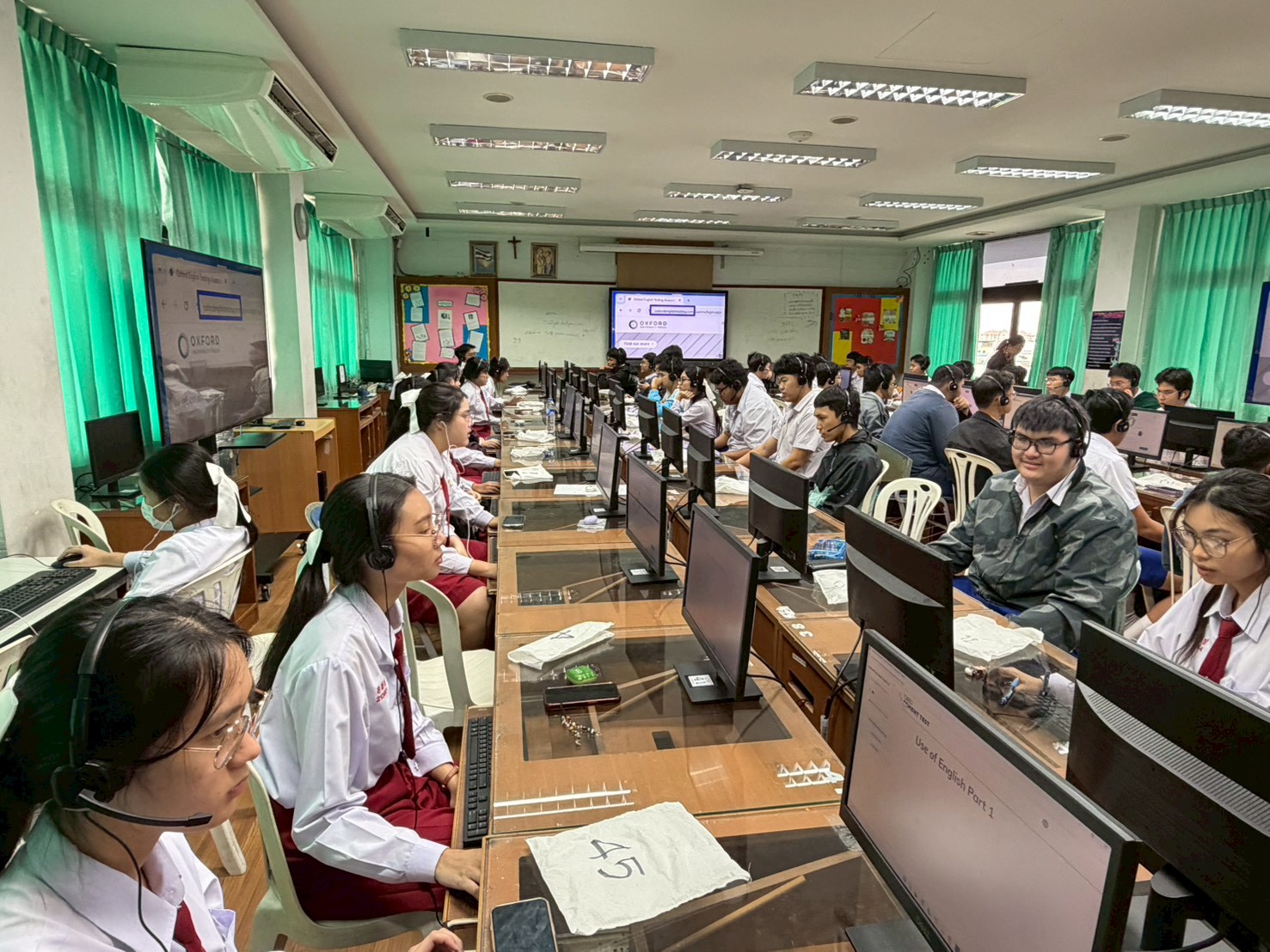 Students in Grade 12 are required to take an English standardized test to assess their proficiency according to the CEFR framework. The test session is scheduled from 27–31 October, and students from the Modern Language Program (Rooms 1–7) are participating in the placement examination.