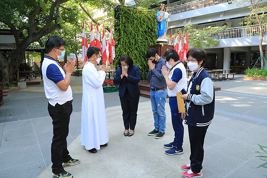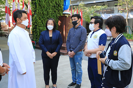 ภราดา ดร.พิสูตร วาปีโส มิสดวงดาว ทุมเมืองปัก มาสเตอร์ชานนท์ พรชัยเทพินทร์ และม.ทองพูน โพธิสาร ตัวแทนคณะกรรมการกองทุนสวัสดิการครู และพนักงาน รับมอบเงิน จำนวน 60,000 บาท จาก คุณอัณณพร อุบลบาน ผู้บริหารฝ่ายขาย และคุณอัสรินทร์ อินตุ้ม ฝ่ายธุรกิจประกันกลุ่ม บมจ.อลิอันซ์ อยุธยา ประกันชีวิต เพื่อสนับสนุนกิจกรรม ACSP Christmas Fair 2021